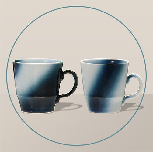 400年以上の歴史とともに育まれてきた山口・「萩焼」。その象徴とも言えるやわらかい風合いで、コーヒーのアロマが感じやすい丸みを帯びたシェイプのマグカップ。伝統的な萩焼を、生活のワンシーンで愛される日常食器として未来に遺すことを目指す山口・萩市の「萩陶苑」が手がけました。職人が土と釉薬と焼成を巧みに組み合わせ生まれたカラーは、ロースタリー 東京の夜のテラスと、その眼下に流れる目黒川をイメージした深いブルーに、川沿いの桜並木からインスパイアされた穏やかなピンクを加えた2色。一つ一つ色合いや表情が微妙に異なるのも魅力です。器の表面にある細かい貫入(ヒビ模様)に茶渋などが浸み込み、趣が変わる様子を「萩の七化け」として親しまれてきたことも萩焼の特長です。年月とともに移ろう表情の変化もお楽しみください。