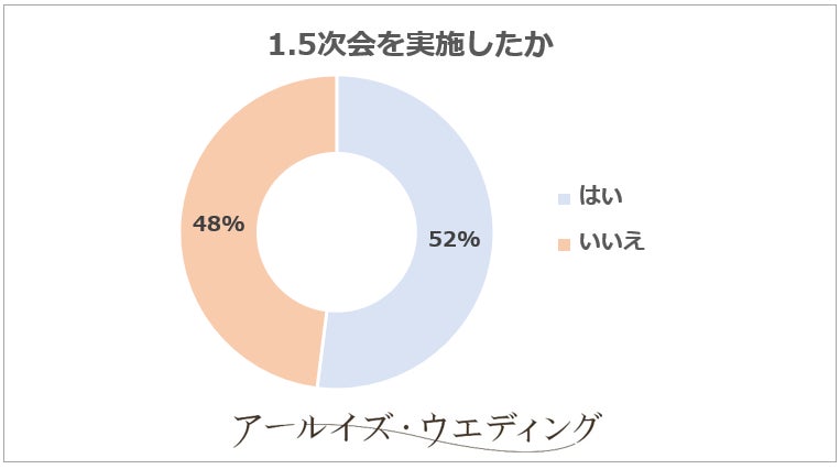 リゾートウエディングを実施された方のうち、52%の方がリターンパーティ(1.5次会)を実施されています。