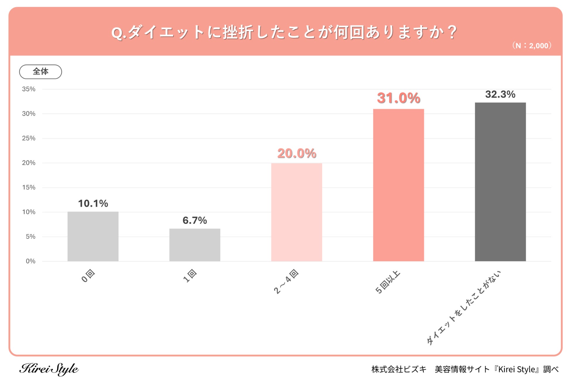 ダイエットに何回挫折した?第2位は「2~4回」で20.0%、31.0%の第1位とは!