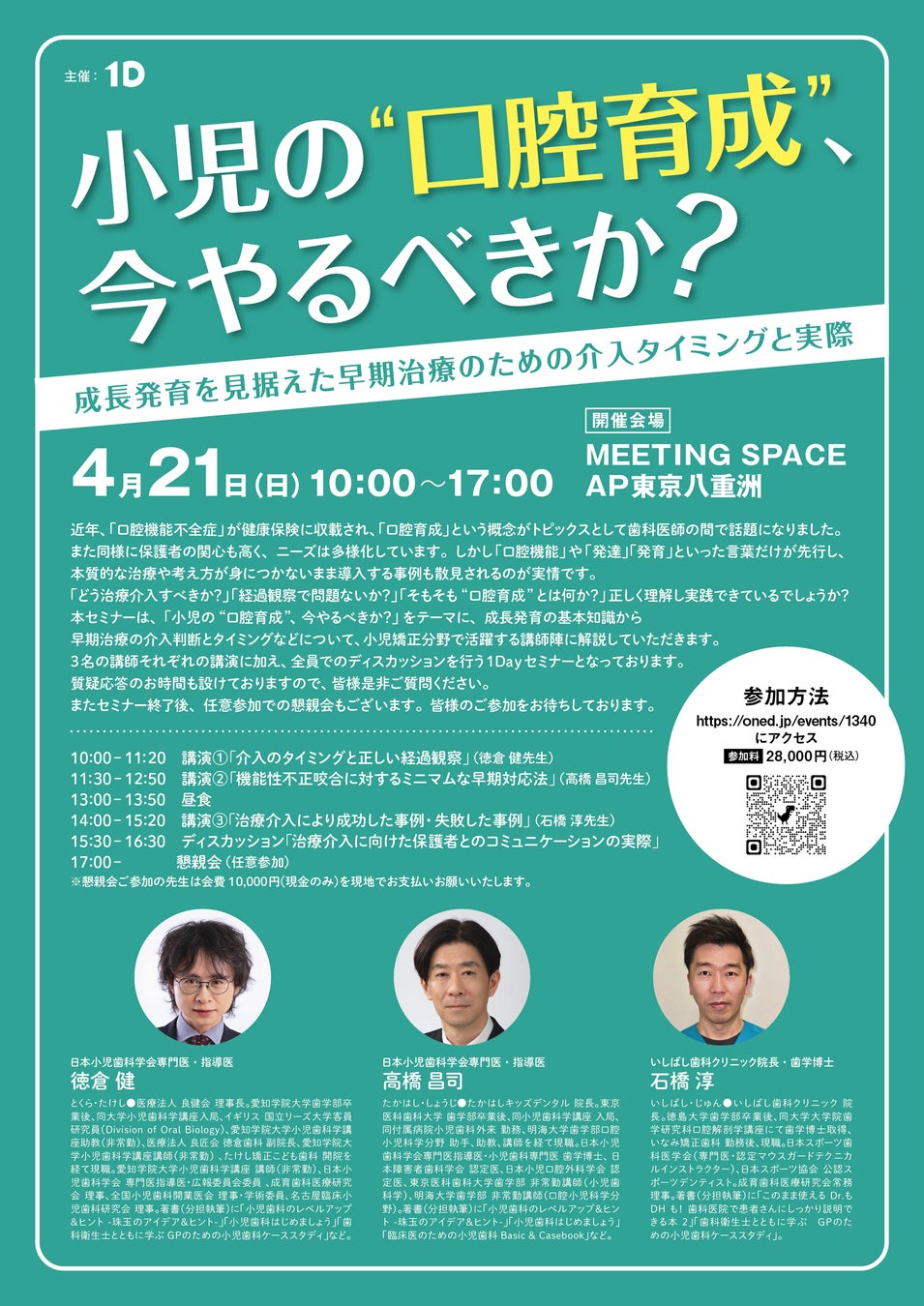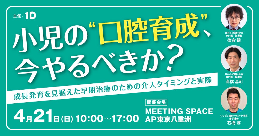 日本最大級の歯科医療メディア『1D( https://oned.jp/ )』を運営するワンディー株式会社(本社:東京都港区、代表取締役:松岡周吾)は、2024年4月21日(日)に東京駅八重洲口の会場にて「小児の口腔育成」をテーマにした講座・セミナーを開催いたします。同講座は、これまでオンラインでの歯科セミナーを配信していたワンディー株式会社で初めてのリアル会場での開催となります。