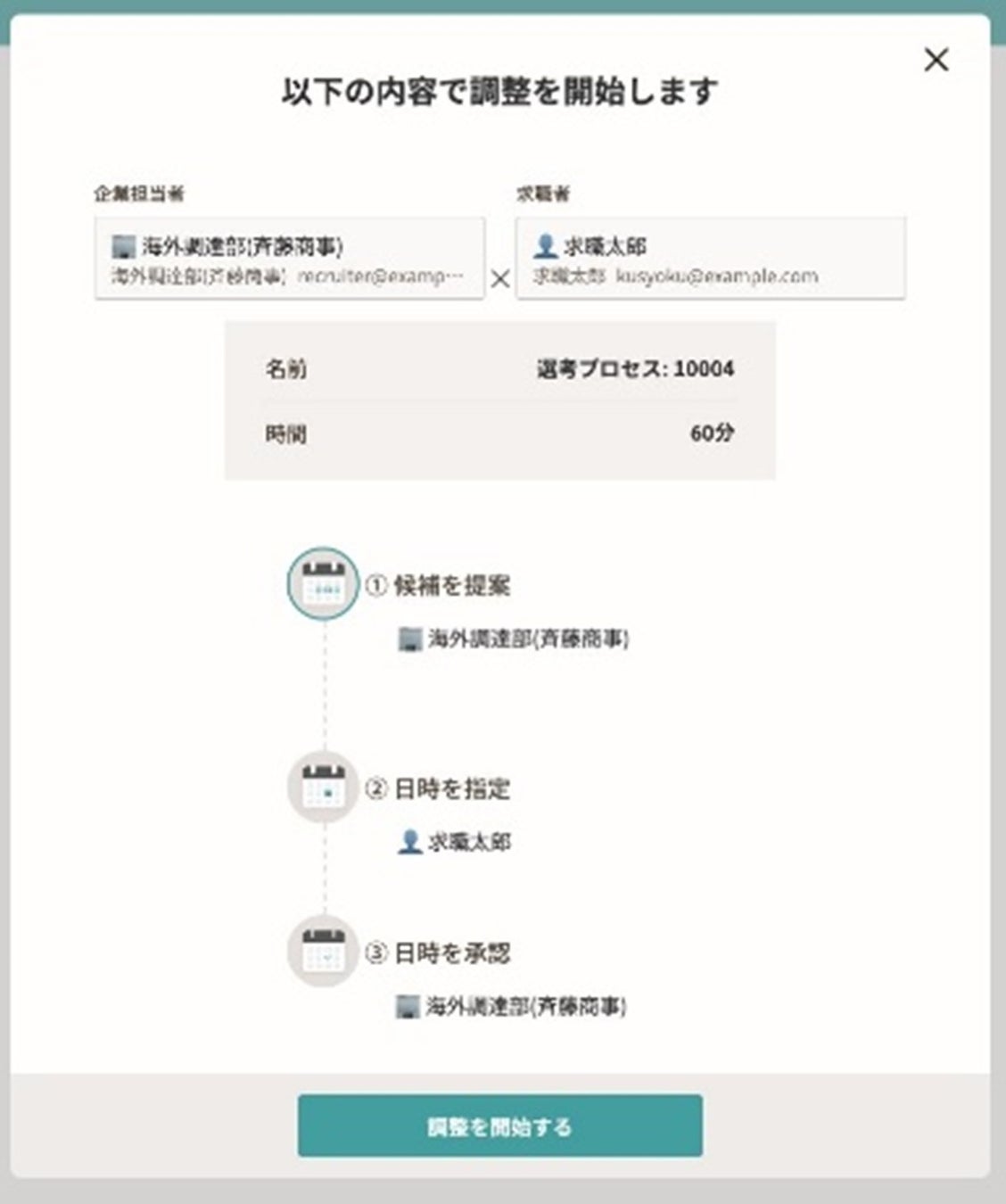 2. 内容を確認し、日程調整を開始する(その後、自動で双方にメール送付)