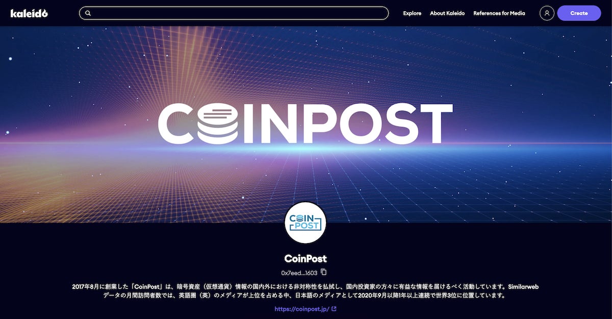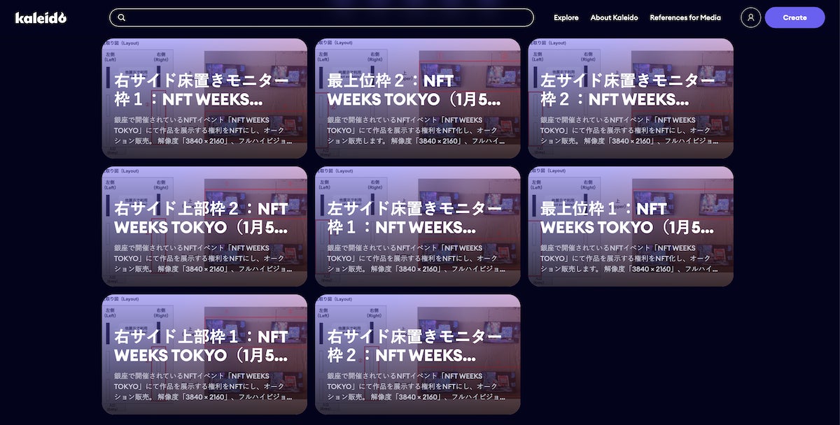 KaleidoはNFT化された広告枠の出品・入稿・審査・売買を行うために開発されたプロトコル、および、マーケットプレイスです。Bridges, Inc. が中心となりβ版が開発されました。Kaleido上の広告枠取引における金銭のやり取りはすべてスマートコントラクト上で行われ、メディアの審査が完了した広告内容が自動的に設定された枠に表示される仕組みになっています。