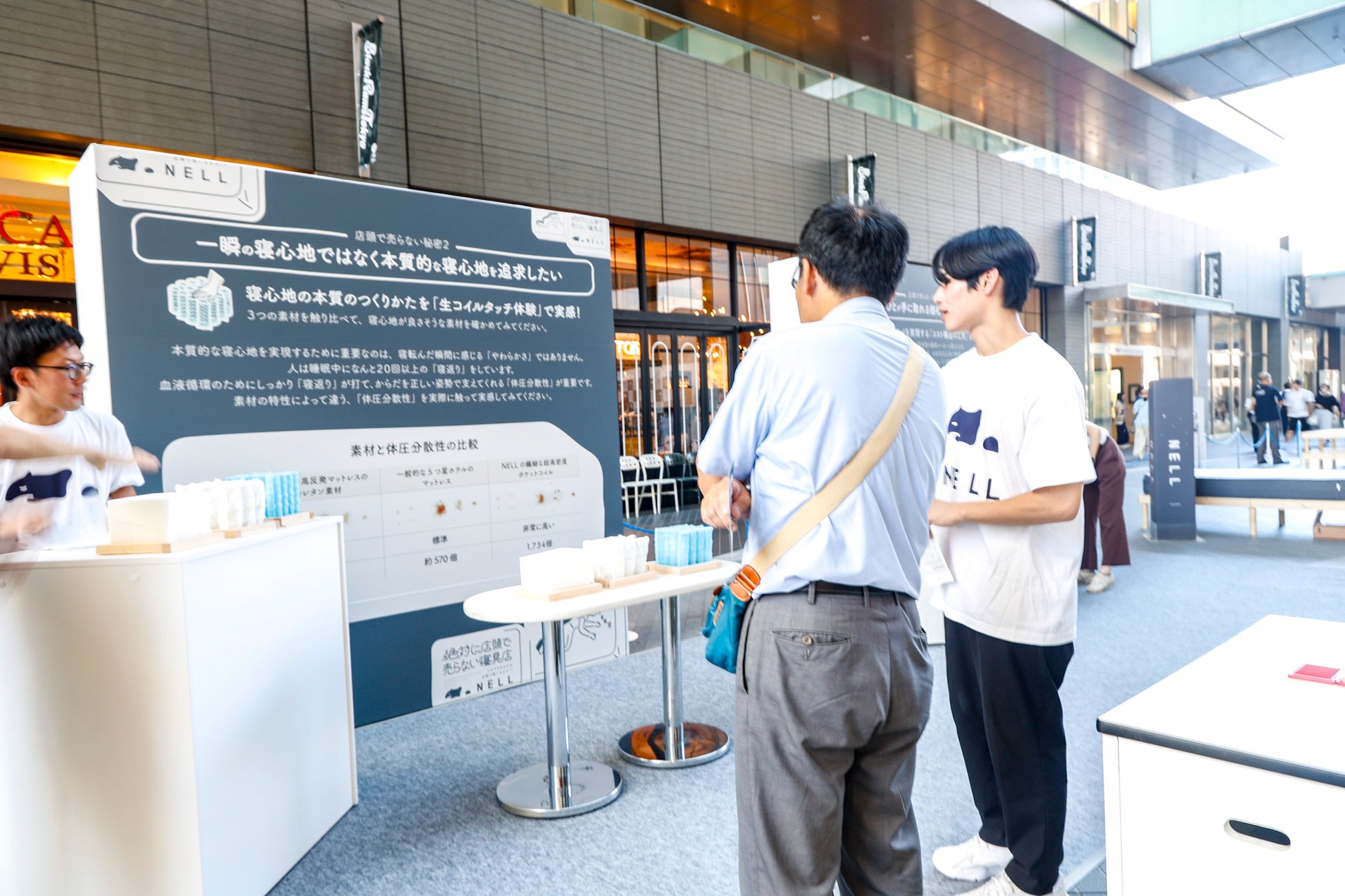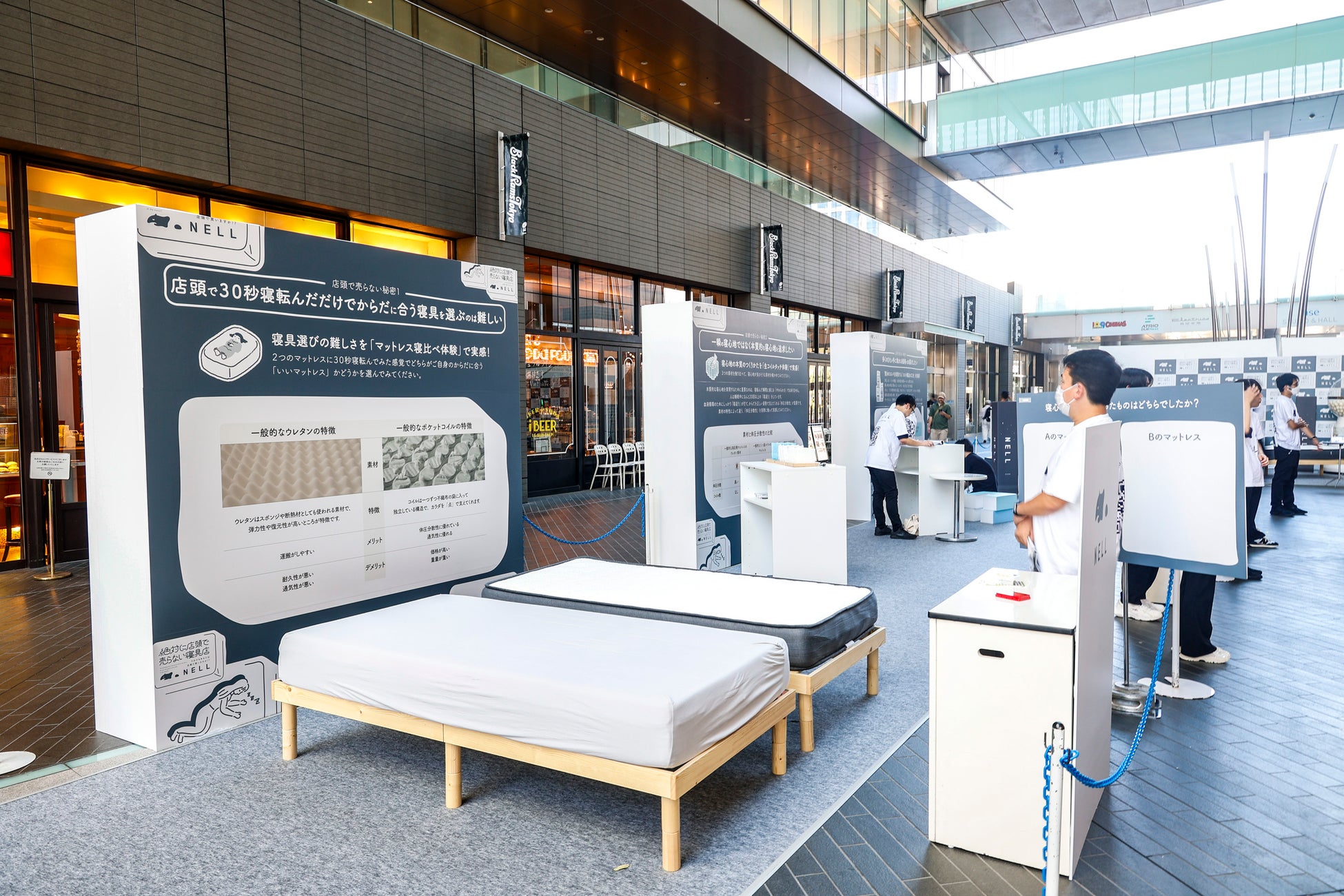 2020年10月にスタートした寝具ブランド「NELL」は、業界最高水準の1,734個(※)の超高密度ポケットコイルを使用したNELLマットレスを販売し、最高品質の睡眠体験を手に届きやすい価格でお届けしてまいりました。そんな「NELL」が、“なぜWEBのみでの販売にこだわり、絶対に店頭で売ろうとしないのか?”。その秘密を3つの体験を通して知って頂くイベントを開催し、3日間で合計1,300名以上の方に来場いただきました。