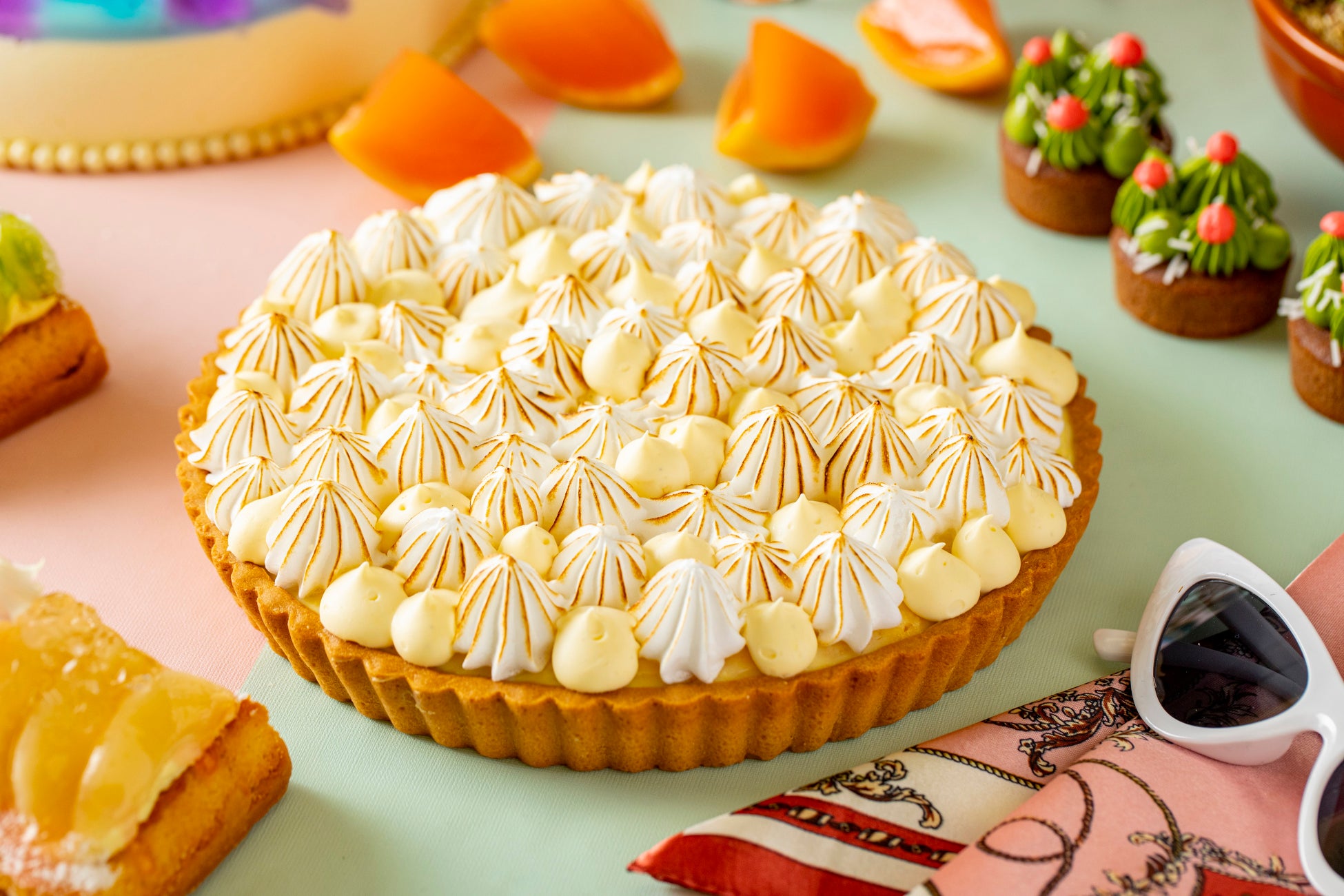 甘酸っぱいレモンカードにフレーズデボワを組み合わせて、口溶けの良いメレンゲでデコレーションした夏向きの王道タルト。