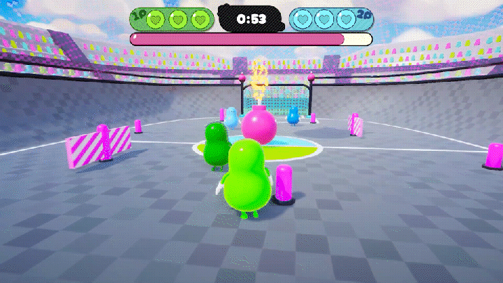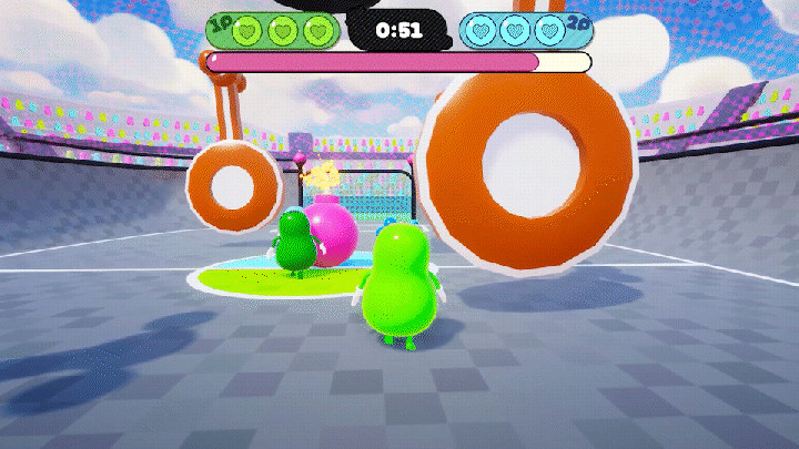 本作は、ボブたちの間で大流行中のエキサイティングすぎるスポーツ「爆弾サッカー」をテーマにしたアクションゲームです。 ルールはシンプル。フィールドを転がる「爆弾」を相手のゴールへねじ込むだけ!しかし、この競技には「爆発」という最大のスパイスが用意されています。