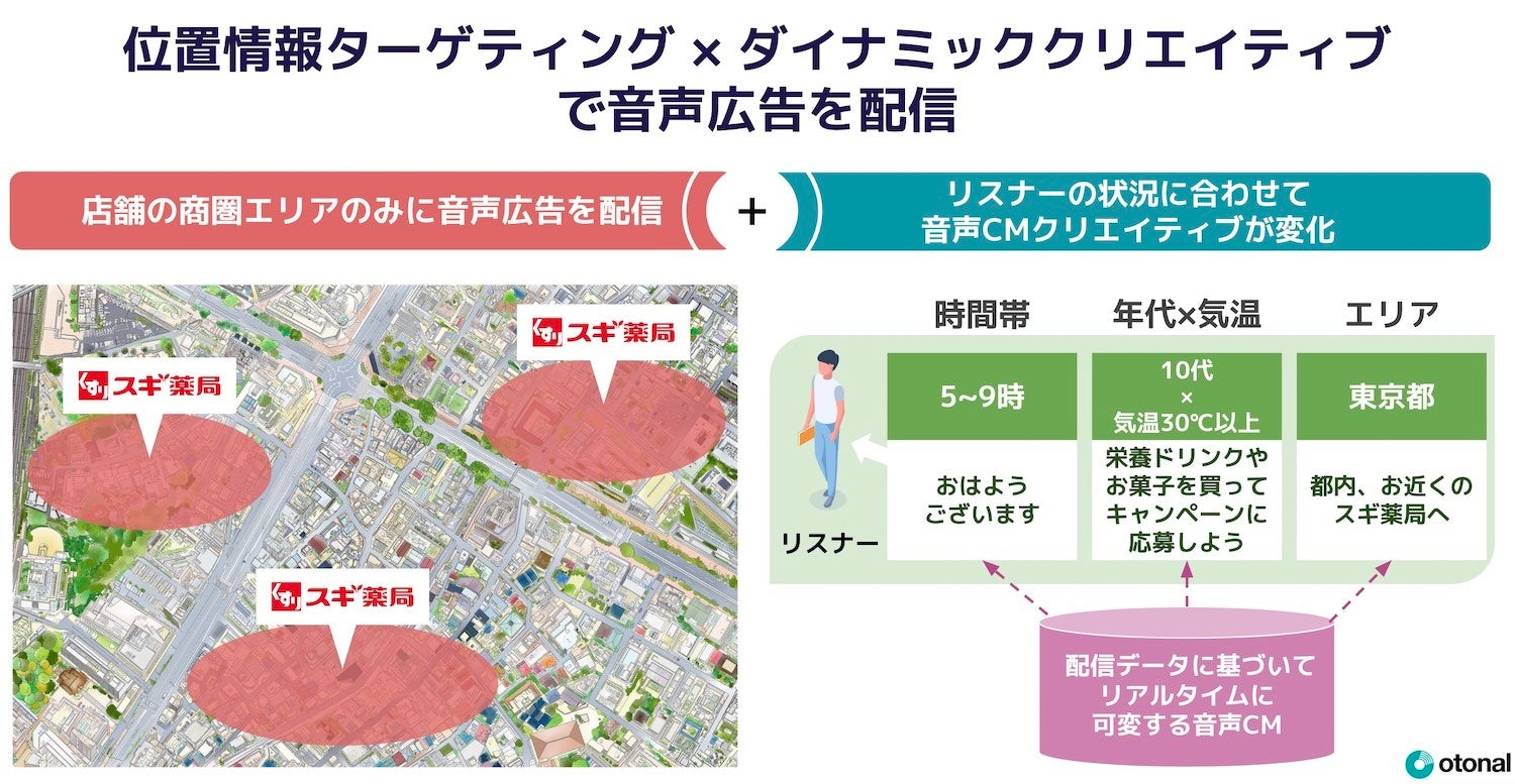 オトナル、スギ薬局の広告キャンペーンにて国内初*のダイナミッククリエイティブと商圏データを活用したデジタル音声広告を実施