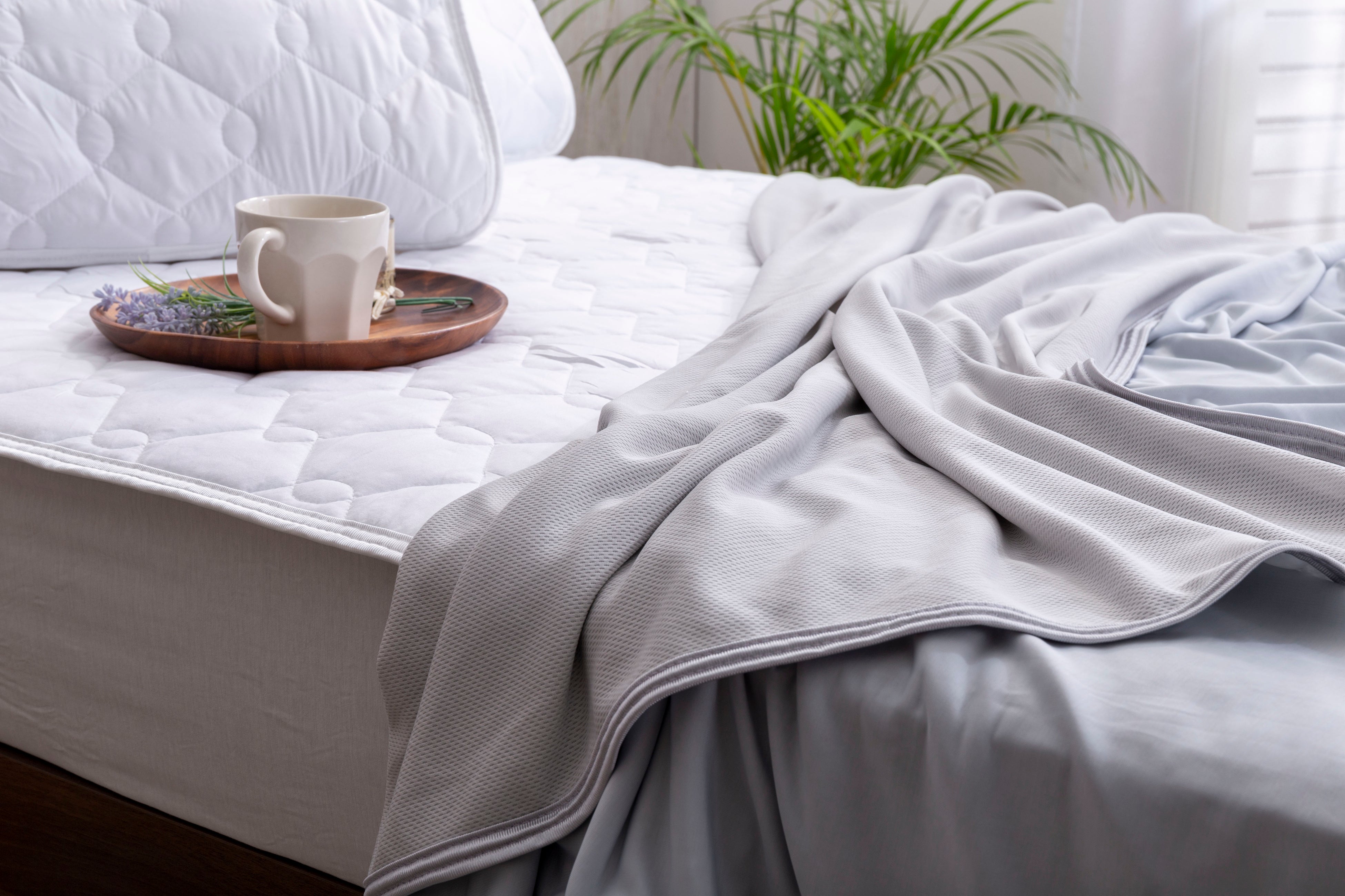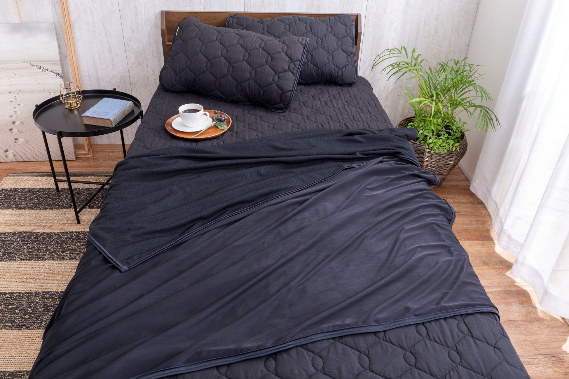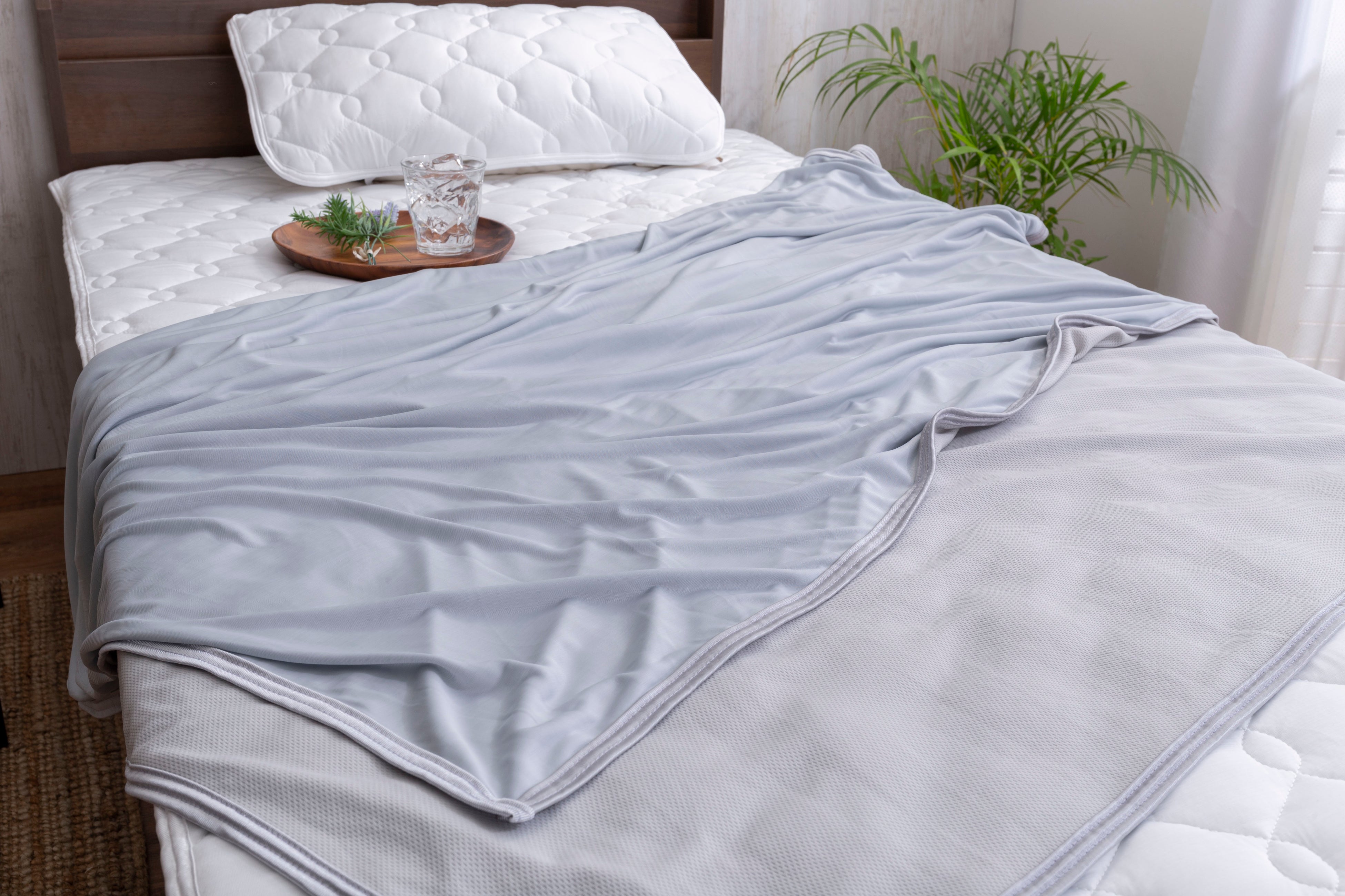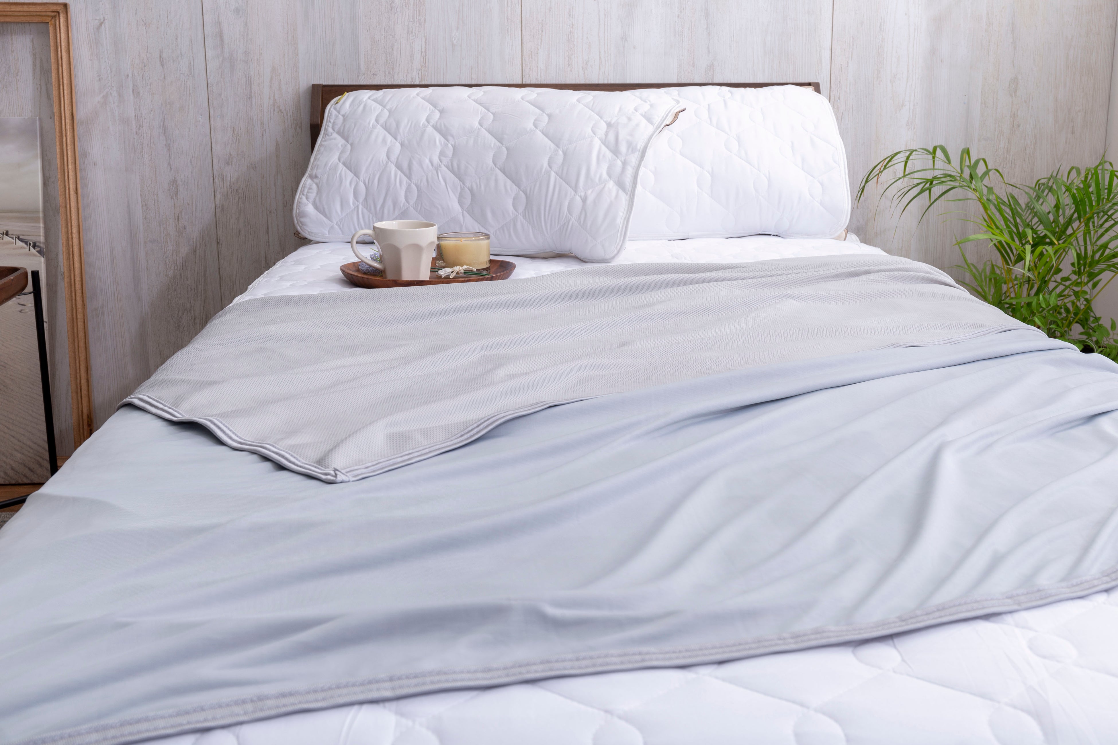 1.夏を心地よく眠るために、快適機能をプラスしたクール寝具“Fab Cool®️”シリーズ。季節やお好みに合わせて選べるリバーシブル仕様で、接触冷感面は触って冷たいと感じる接触冷感の基準値Q-max値0.2w/cm²を約1.8倍超えたQ-max値0.35w/cm²。心地よい“ひんやり”が続き、真夏は冷房との併用でより冷たく感じられます。