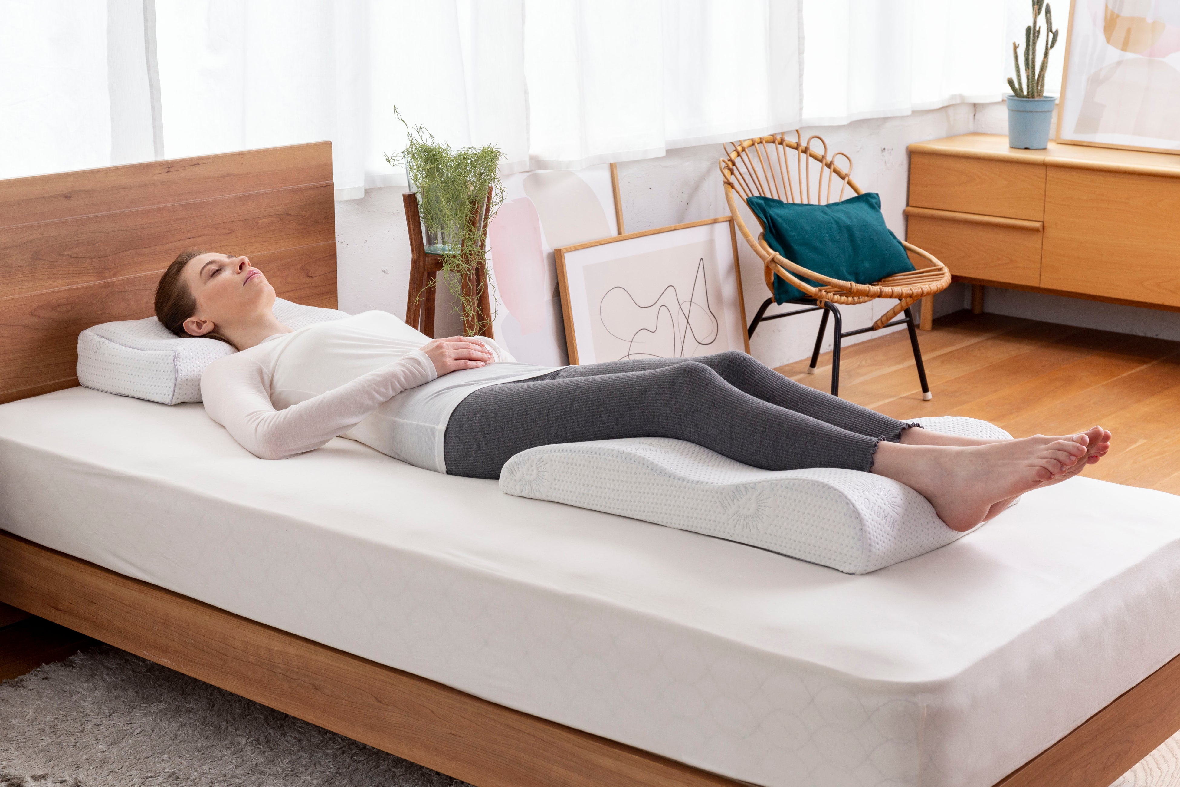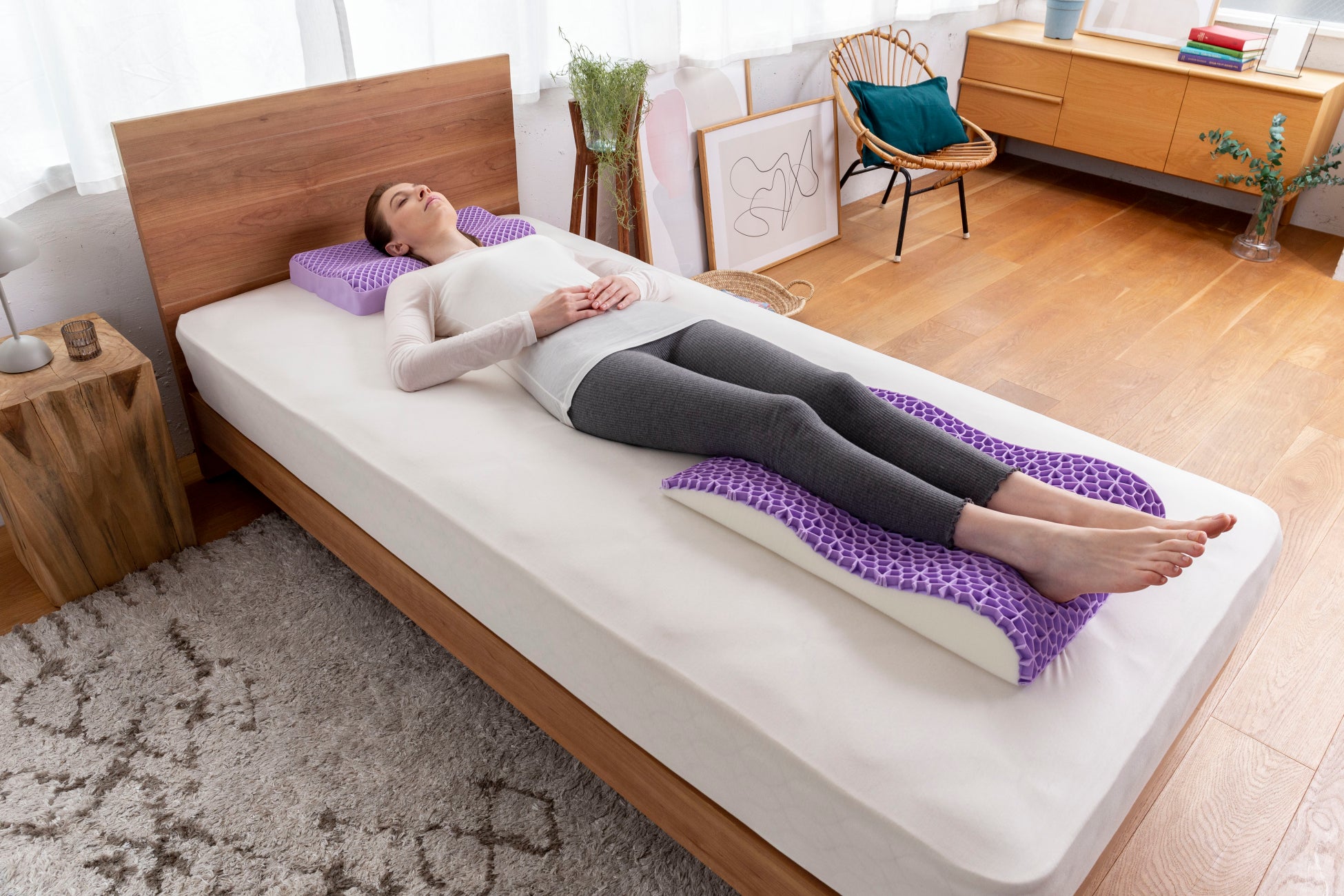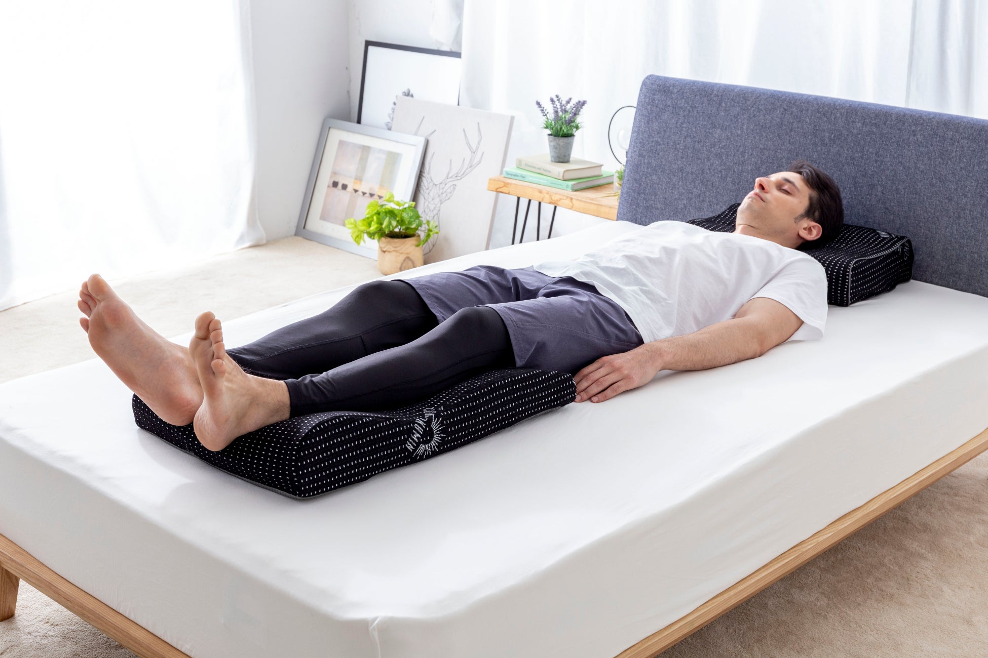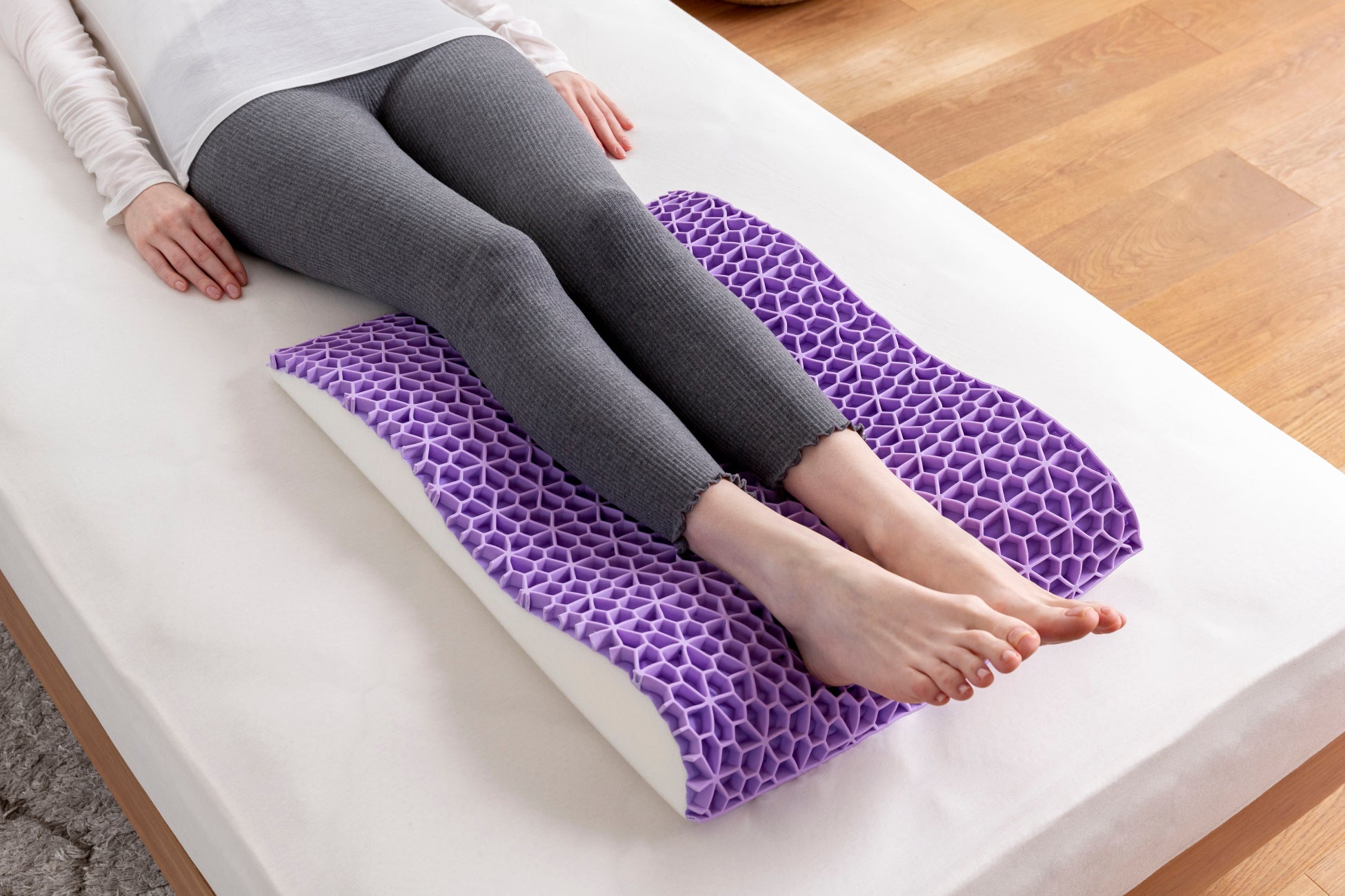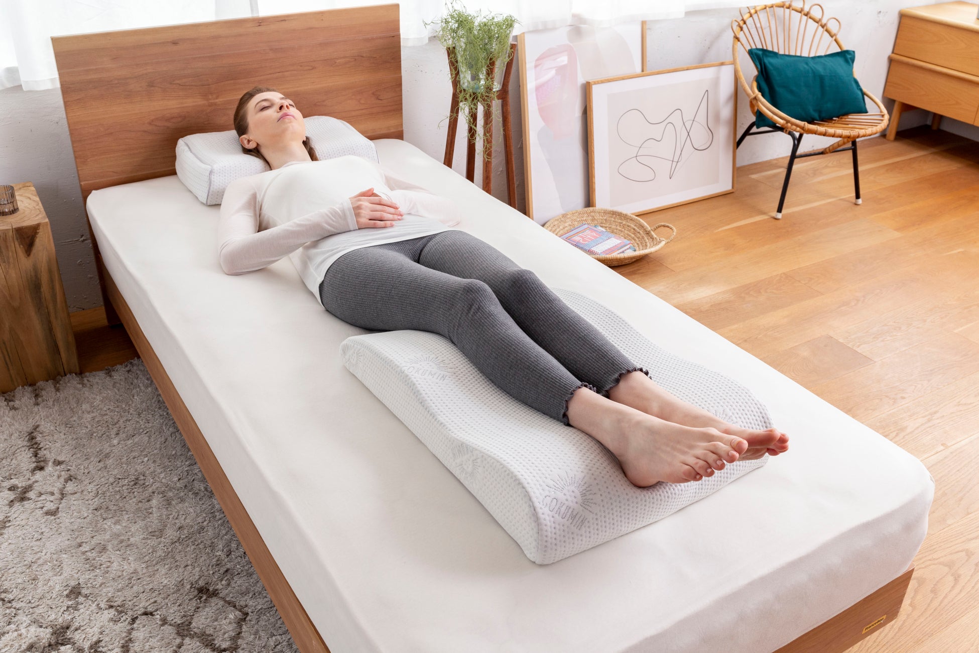1.血液やリンパの巡りをスムーズに促し、脚の疲れやむくみ対策に効果的な整体師監修フットピロー。脚全体を心臓より高い位置に上げることで、足先まで血流をスムーズにし、膝や腰に負担をかけにくい寝姿勢を作ることができます。さらに骨盤の開きを抑え、膝が外に向いてしまうのを自然と防ぐ効果があるため、日常的に使用すればO脚や膝痛改善が期待できます。骨盤の位置の補正により、背骨がS字カーブを描く寝姿勢をとれるので、腰痛が起こりにくいメリットも。※使用時の効果については個人差があり、疲れやむくみの回復・改善を保証するものではありません