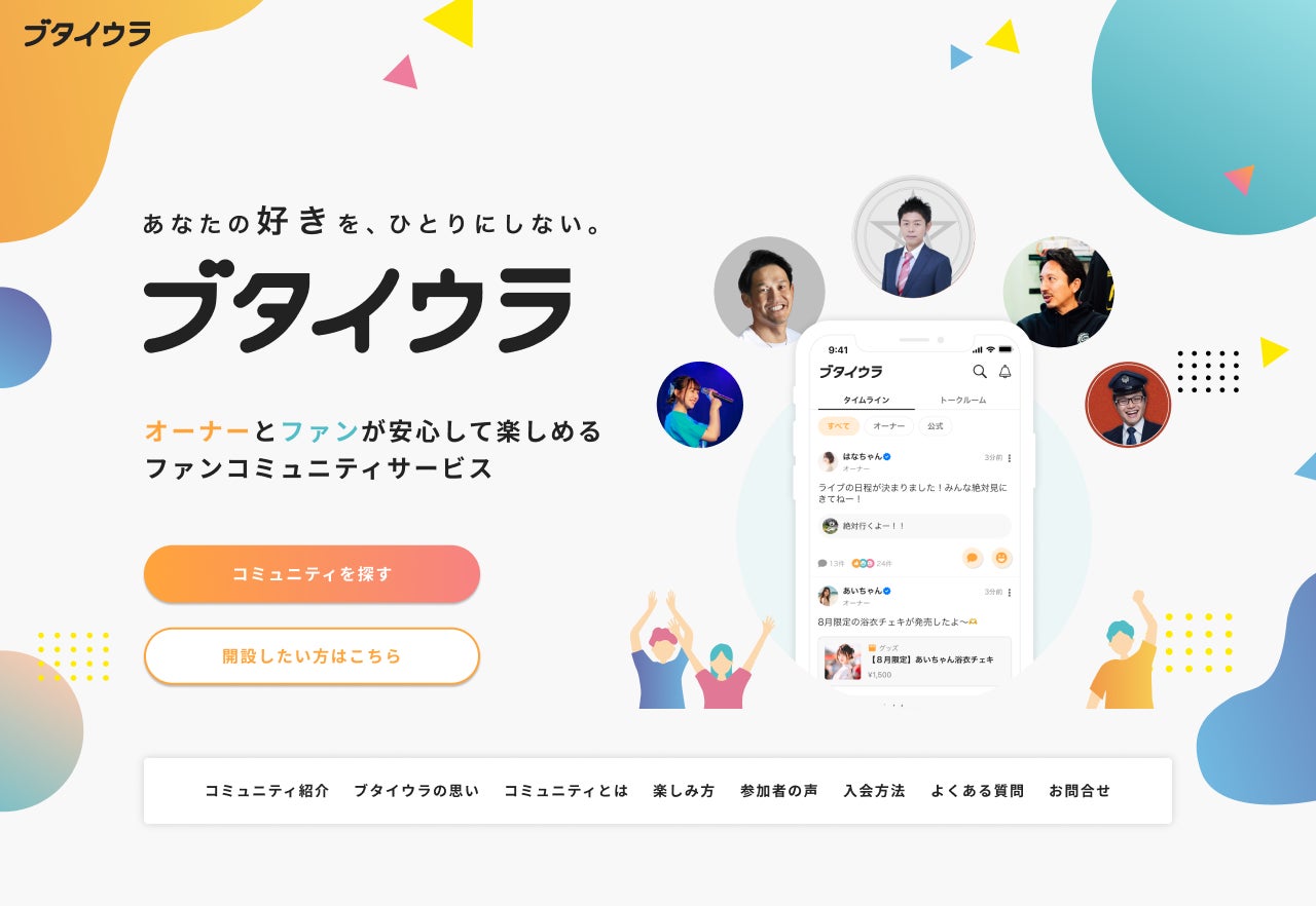 オーナーとファンが安心して楽しめるファンコミュニティサービス、「ブタイウラ」