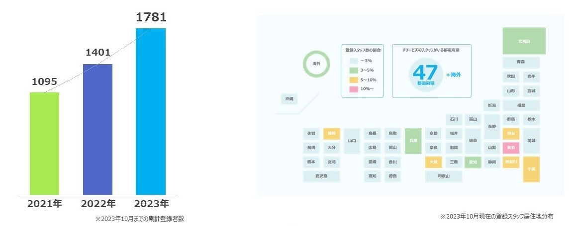 1. 累計登録スタッフ数は、昨年から300名以上増加し、1781名(2023年10月時点)となりました。