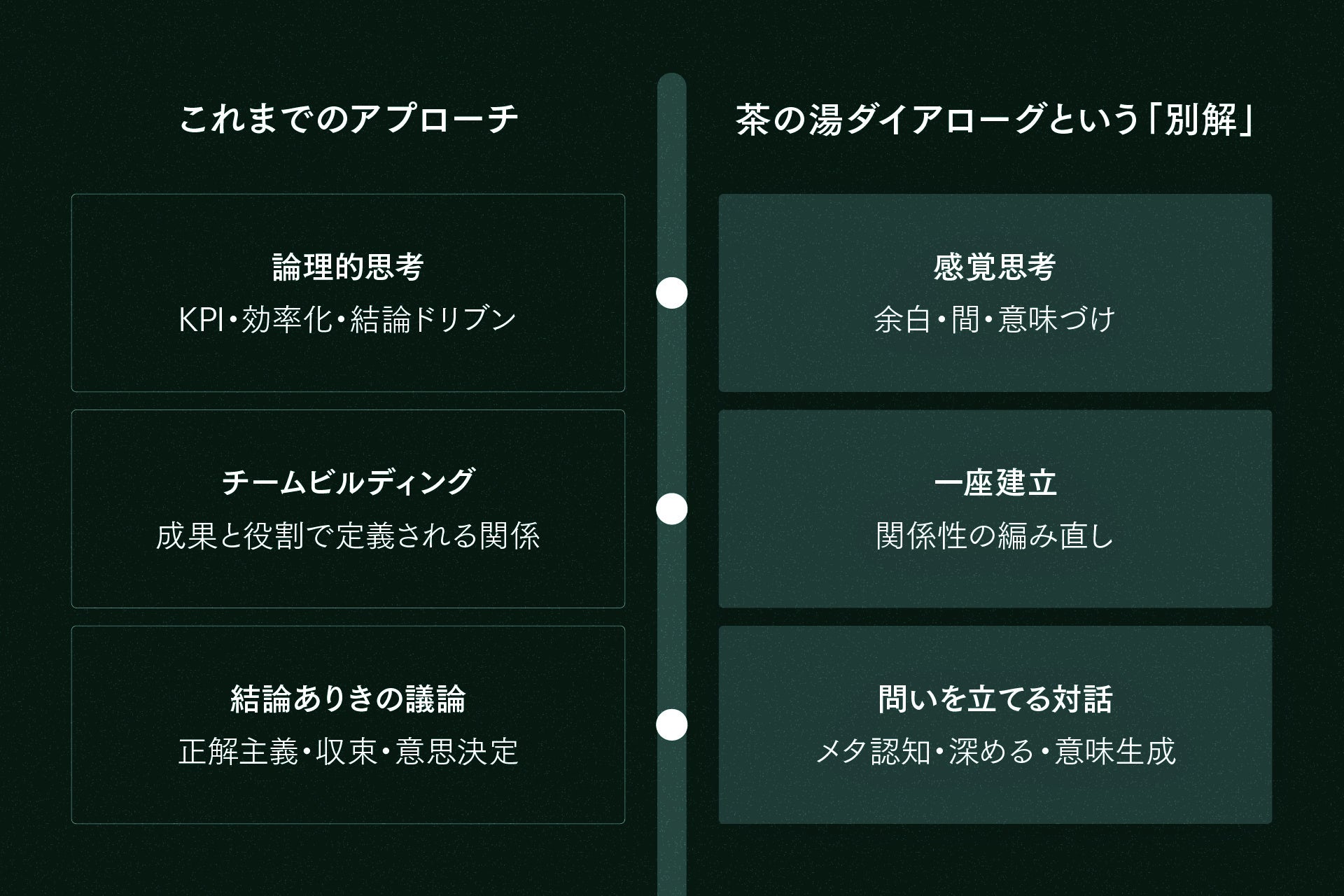 【コンセプト】現代ビジネスパーソンと組織に「茶の湯ダイアローグ」という「別解」を