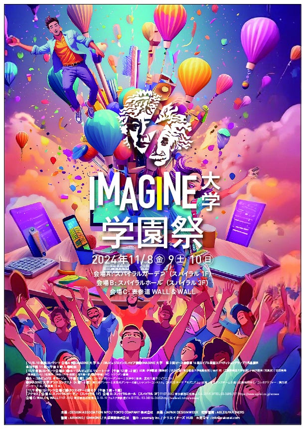 YouTube番組「IMAGINEイマジン大学」では、「人間は誰でもクリエイターである」の合言葉のもと様々なジャンルの講師のトークを配信。社会の第一線で活躍する人は必ず学ぶべき発想や創造性がありそこから若い人を中心に学歴、職歴を超えた生き方、豊かさを伝えてきました。また同時に作品の発表やクリエイターとの交流の場を提供しクリエイティブで世の中を元気にするために活動しています。この秋、活動を拡大しクリエイティブイベント『IMAGINEイマジン大学学園祭』を開催します。東京 青山 スパイラル、WALL&WALLにて 『第1回 IMAGINEイマジン大学学園祭』 を開催、入場チケットを販売中です。