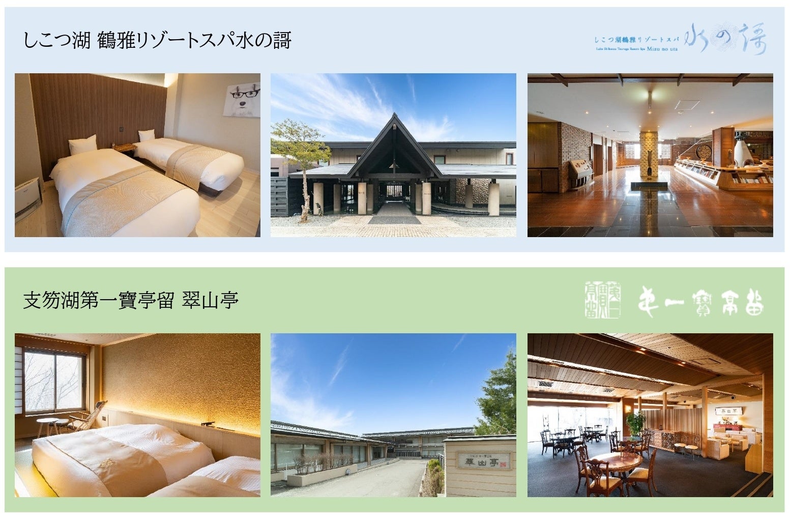 今回「カラーフォーム」のマットレスが採用されたホテルは、鶴雅ホールディングス株式会社(鶴雅観光開発株式会社)が運営する「しこつ湖 鶴雅リゾートスパ 水の謌(みずのうた)」と株式会社第一寶亭留が運営する「支笏湖第一寶亭留 翠山亭」となります。