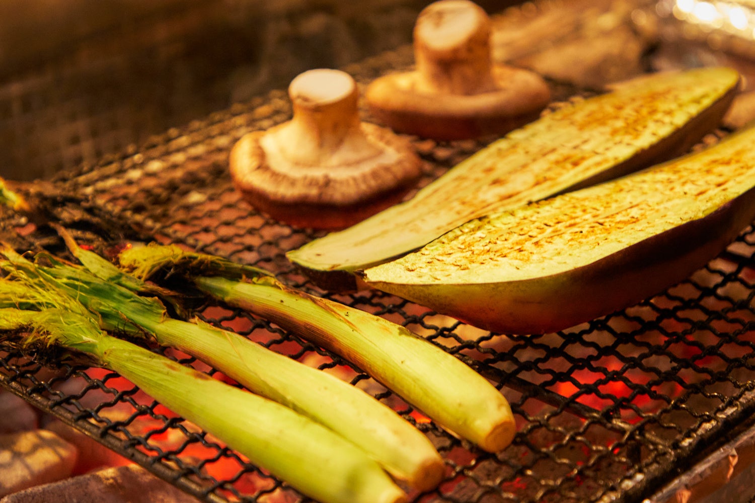 旬の野菜を炭火でじっくり焼き上げ、素材本来の甘みと香ばしさを引き出しました。シンプルだからこそ味わえる、季節の恵みをお楽しみください。