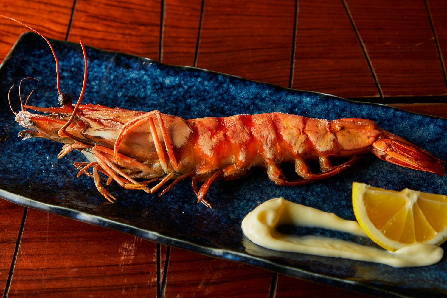 殻ごと豪快に焼き上げた大海老は、香ばしい香りとプリッと弾ける食感が魅力。遠火でじっくり火を通すことで、旨みを閉じ込めつつ、甘みのある身がより一層引き立ちます。