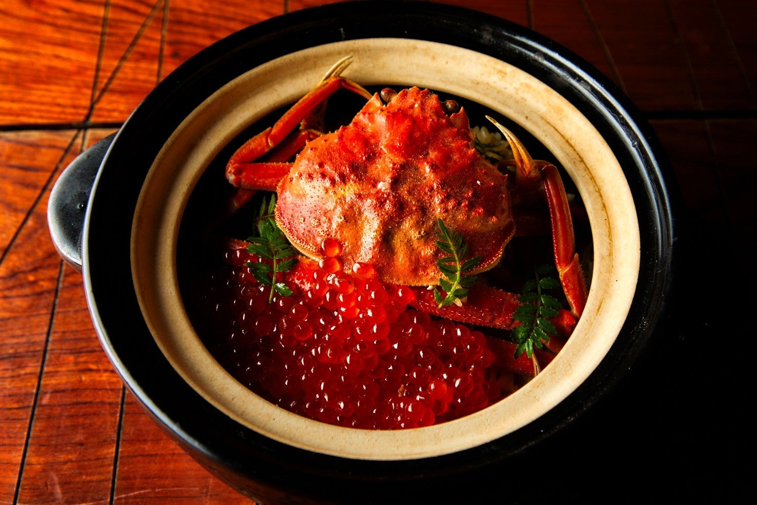丸ごと一匹蟹とイクラの土鍋ご飯