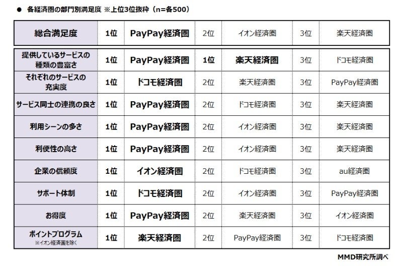 ■PayPay経済圏の満足度が6部門で1位