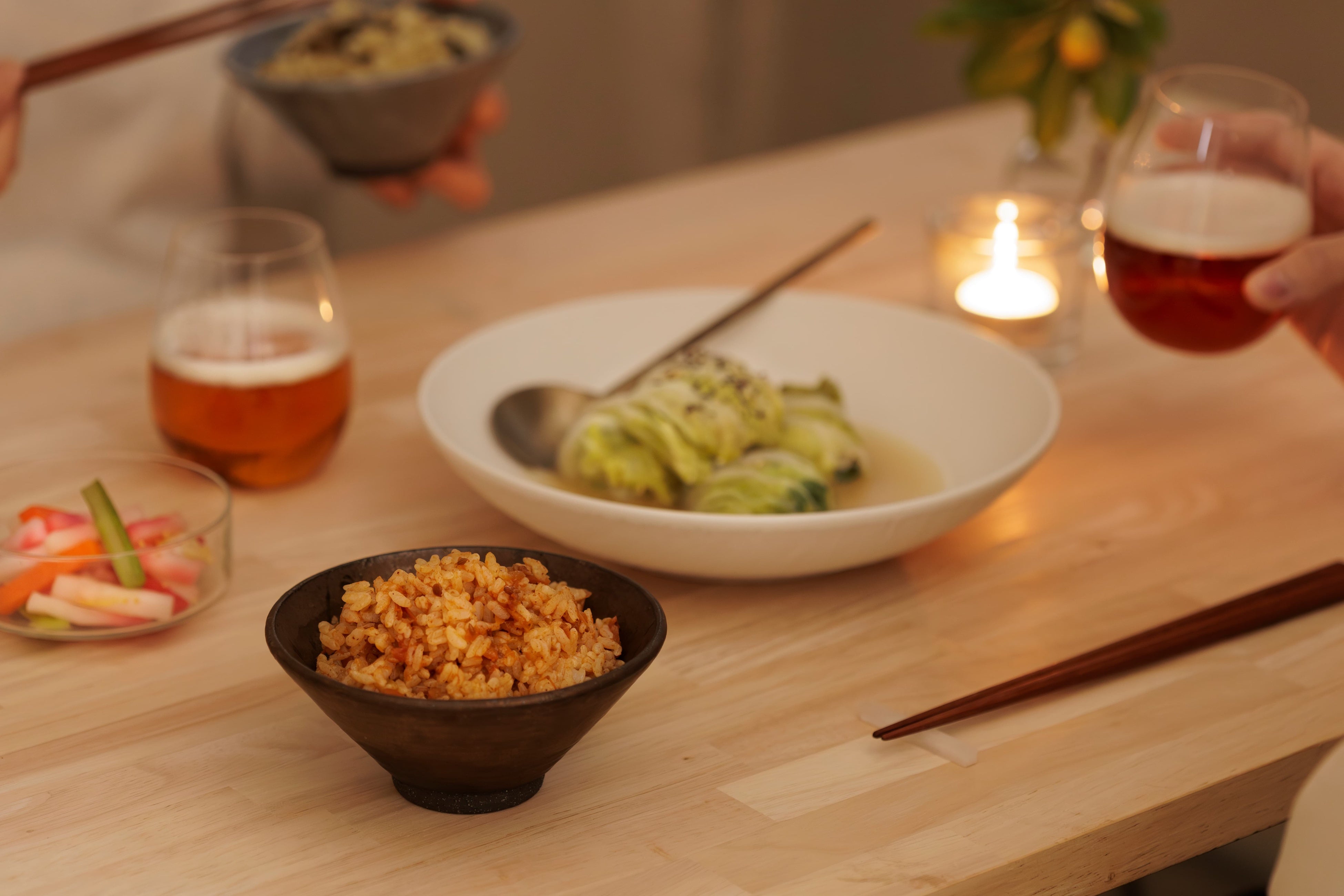 でも、混ぜごはんの素があれば、ごはんを炊いて混ぜるだけで、お野菜の彩りと味わいが加わり、りっぱな一品に。ごはんだけでも、いつもより満足。少し余裕があったら、汁物をプラス。手軽だけれど、心が満たされます。キッチンにあると、ほっとする、そんな商品に仕上がりました。日々の食卓にも、ギフトにも。いろい ろなシーンでお使いいただけたらうれしいです。