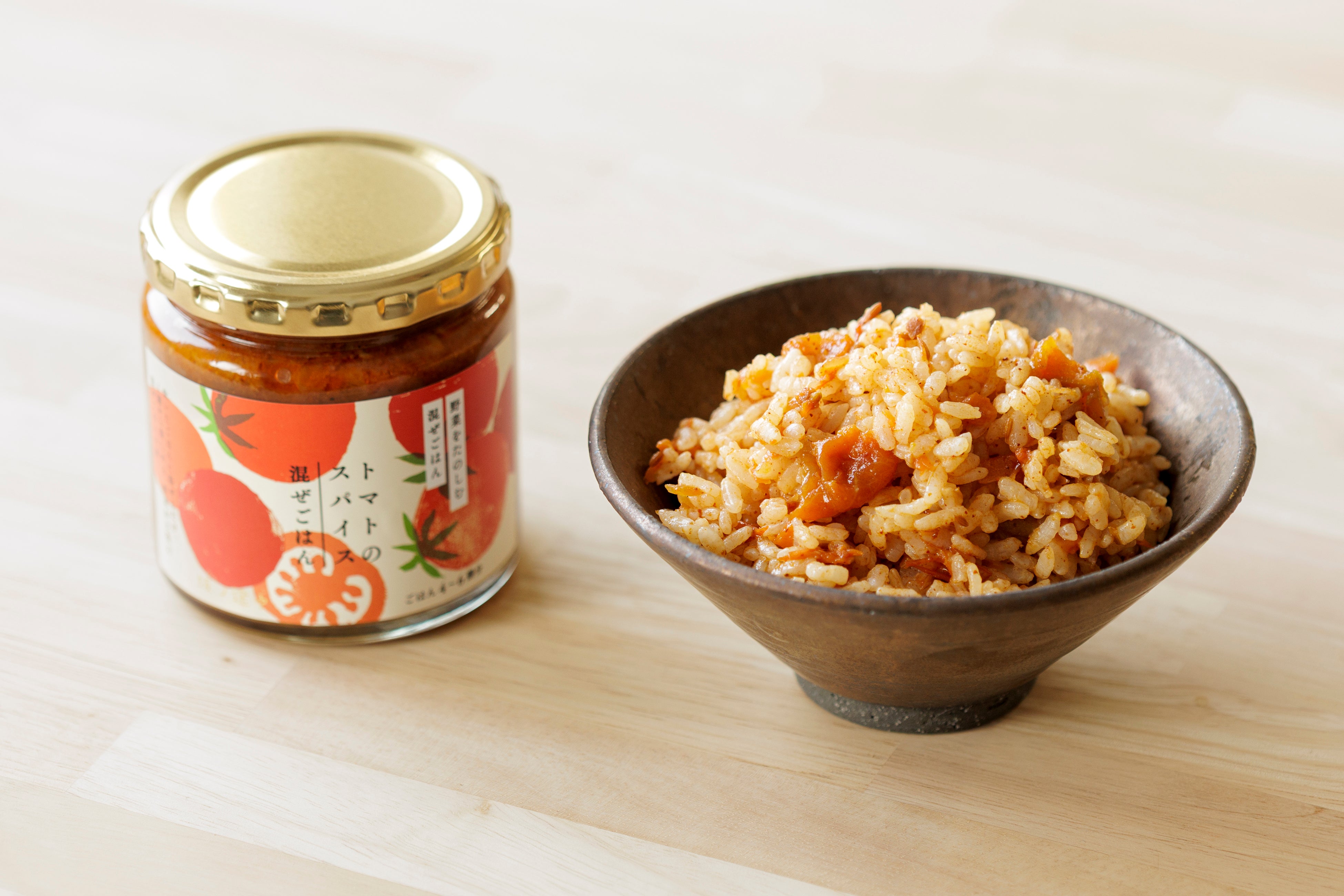 たっぷりのトマトに、人参や玉ねぎ、にんにくを加えて、4種類のスパイスと一緒にじっくり煮込みました。トマトの甘酸っぱさとスパイスの香りが食欲をそそる、大人の混ぜごはん。辛みはないので、野菜を追加するのはもちろん、お肉や魚とも相性抜群。卵とあわせてオムライス風もおいしいです。
