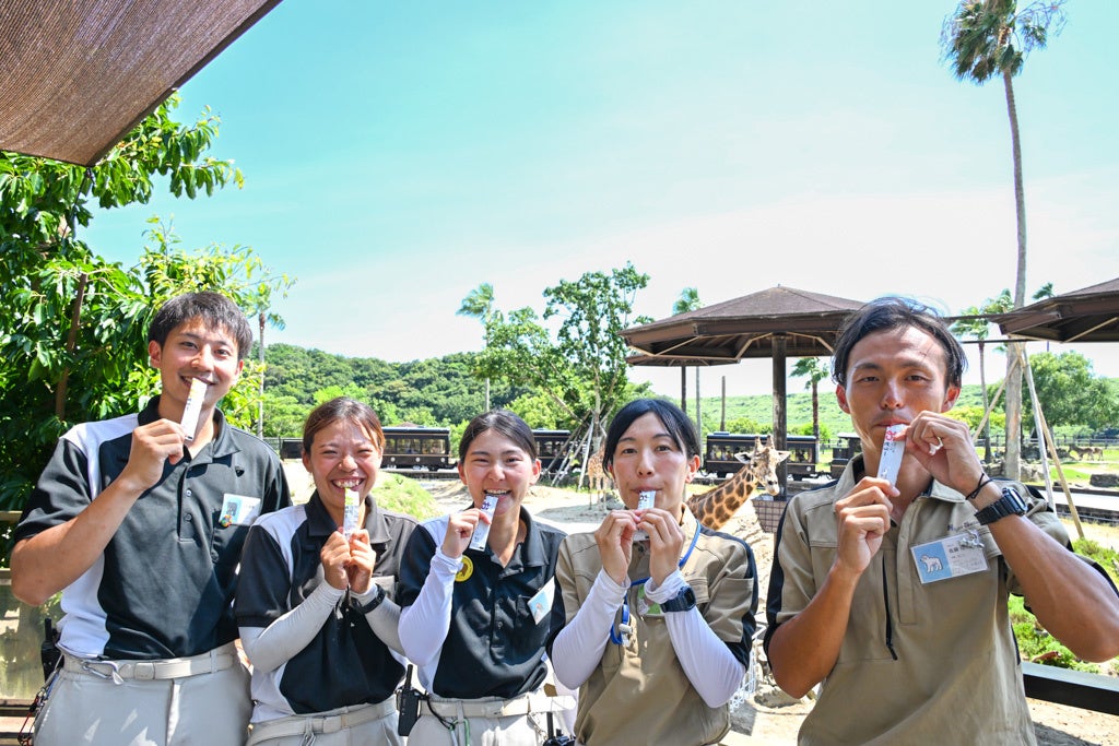 アドベンチャーワールドでは、夏休みの繁忙期を迎えるにあたり、屋外で働くスタッフの熱中症対策と福利厚生の一環として、「ゼネコンがつくったしおゼリー」の試験導入を決定しました。