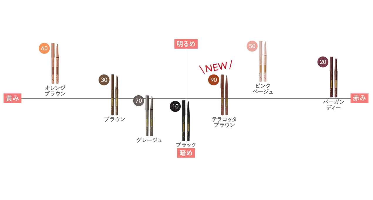 やわらかく落ちにくい、濃密美発色な「セザンヌ ジェルアイライナー」には、しっかりと目元を引き締めつつ、じんわり温度感をプラスする「90テラコッタブラウン」が新登場。