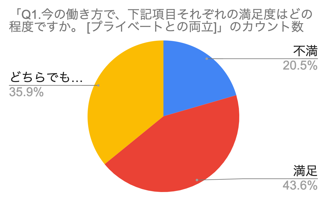 「仕事とプライベートの両立に対しての満足度」についての回答では、「満足」と回答する人が43.6%。