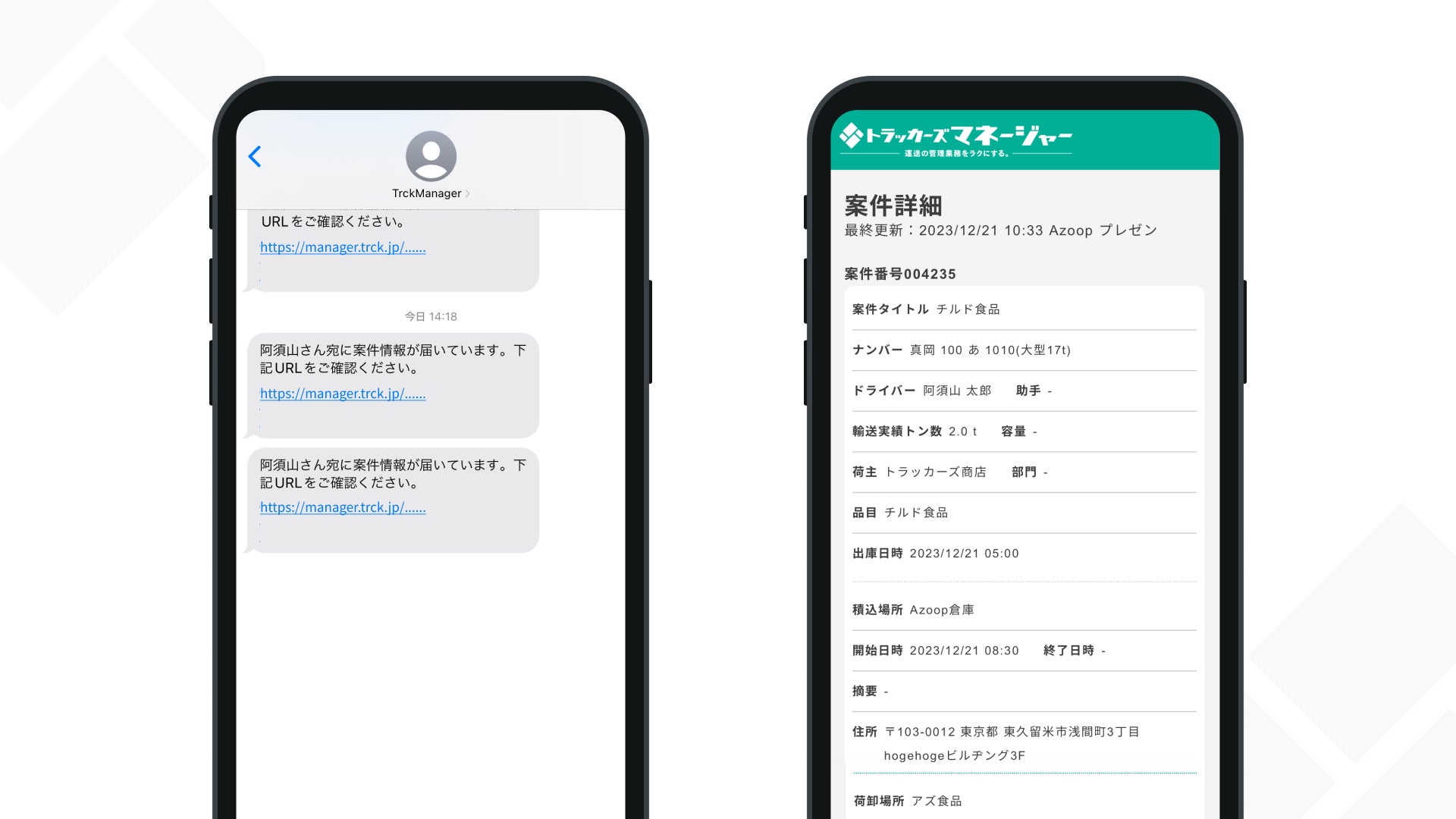運送業務支援サービス「トラッカーズマネージャー」、配車表の案件情報をドライバーにSMSで通知する案件通知機能を追加