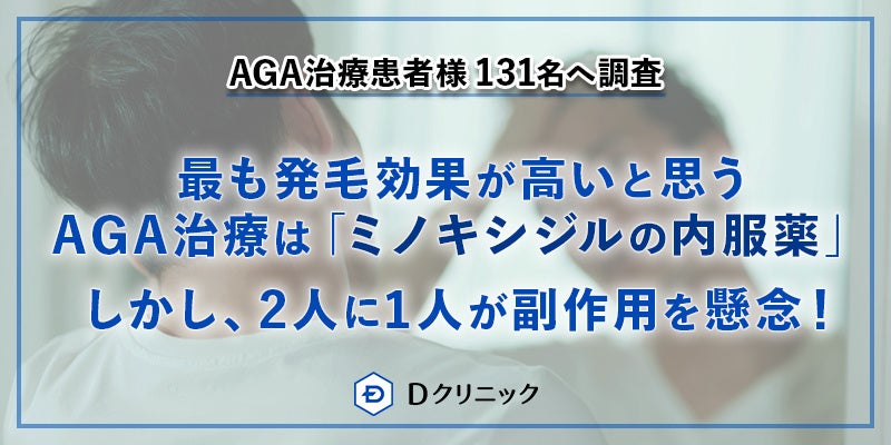 【AGA治療患者様131名へアンケート調査】最も発毛効果が高いと思うAGA治療は「ミノキシジルの内服薬」しかし、2人に1人が副作用を懸念!