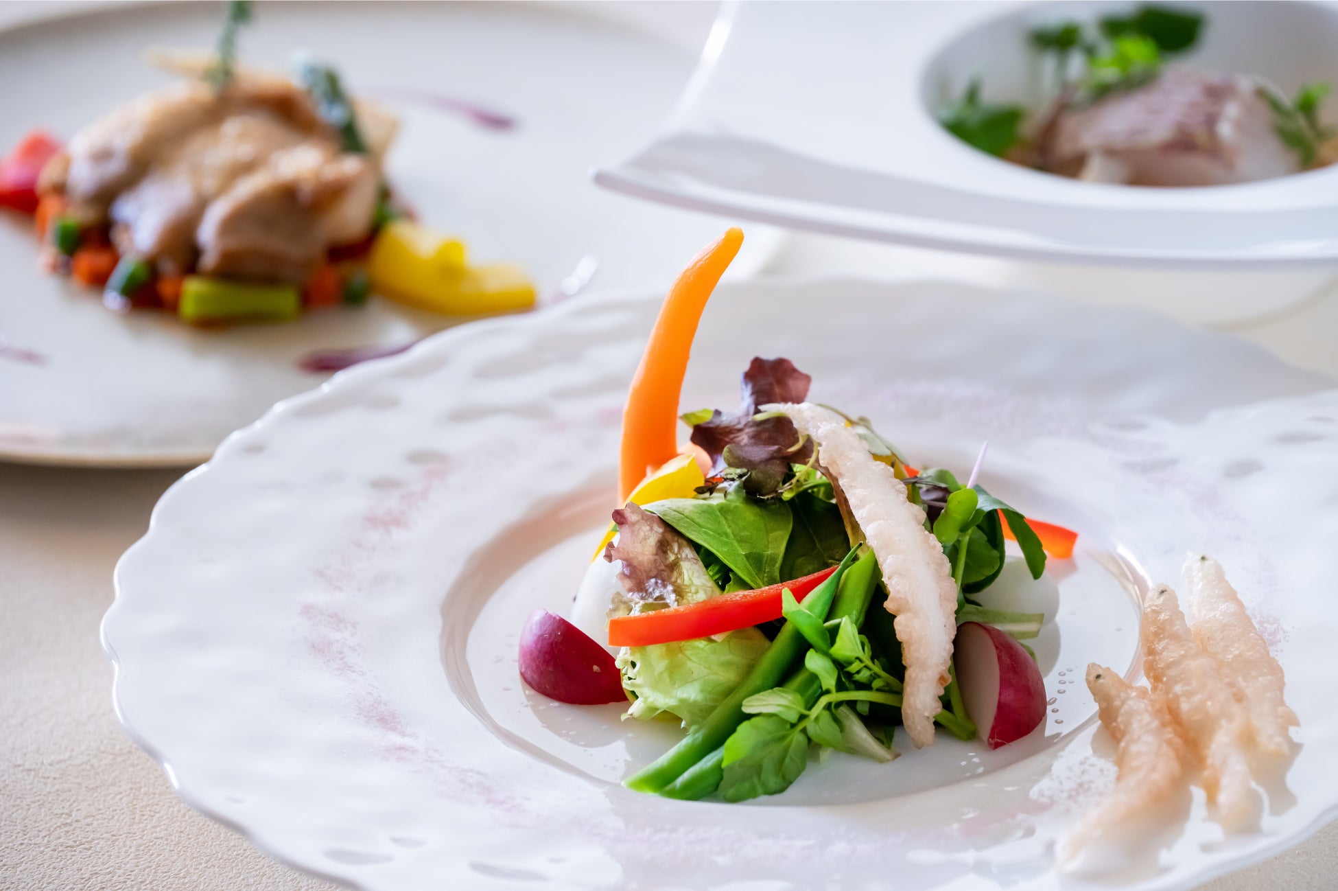 鳥羽の海を一望できるメインダイニング「シーホース」で、その時期の食材を使用したランチコース。