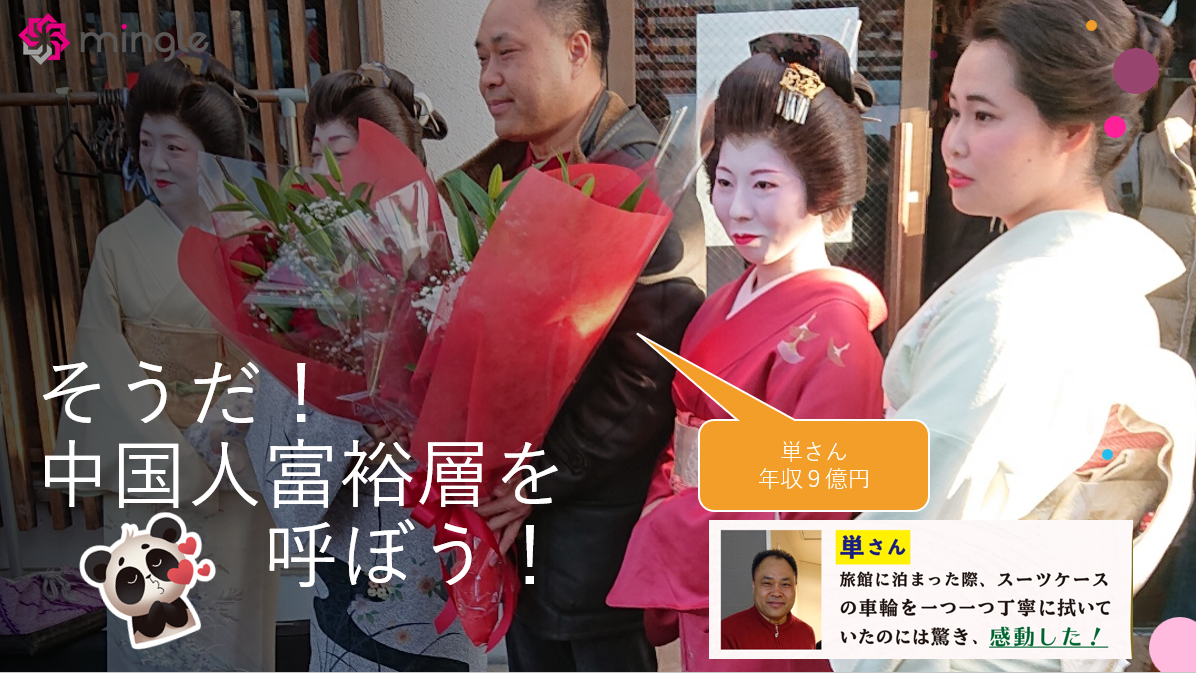 日中ビジネスのmingle株式会社(本社 富山県 代表取締役 百塚万里子)は現在、中国人富裕層向けにインバウンドツアーを賛同者の方々と共に日本全国で30本超作っていますが、肝心な地元協力者が足りません!北陸3県のツアー行程に入っていただける法人、個人事業主を募集いたします!