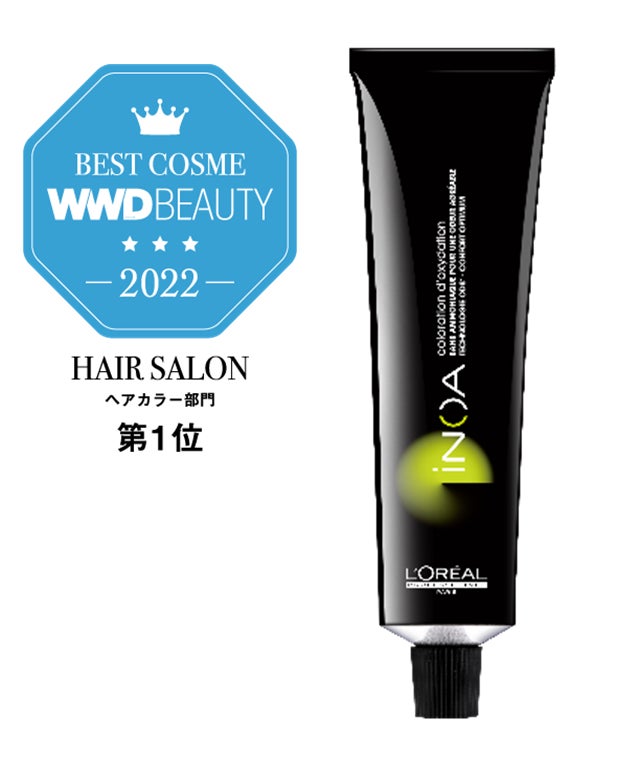イノアカラーは、都内の人気ヘアサロン50軒の美容師152人が選ぶ「WWDBEAUTY 2022 ヘアサロン版ベストコスメ」のヘアカラー部門にて、2021年に引き続き第1位を受賞、2連覇を果たしたカラー剤で、多くの美容師・お客様から支持されている、先進的なカラー剤です。