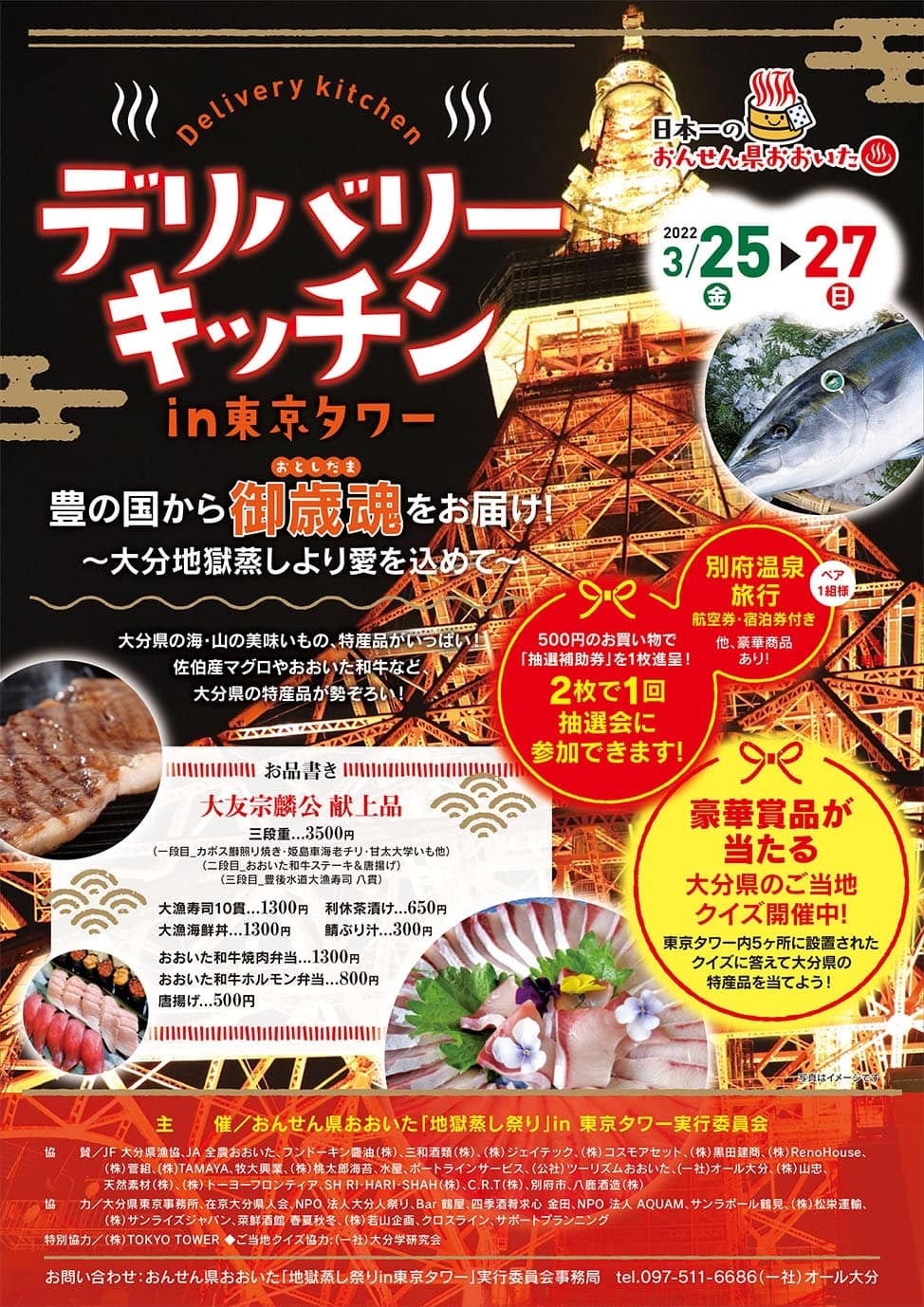 ●主 催 おんせん県おおいた「地獄蒸し祭りin東京タワー実行委員会」