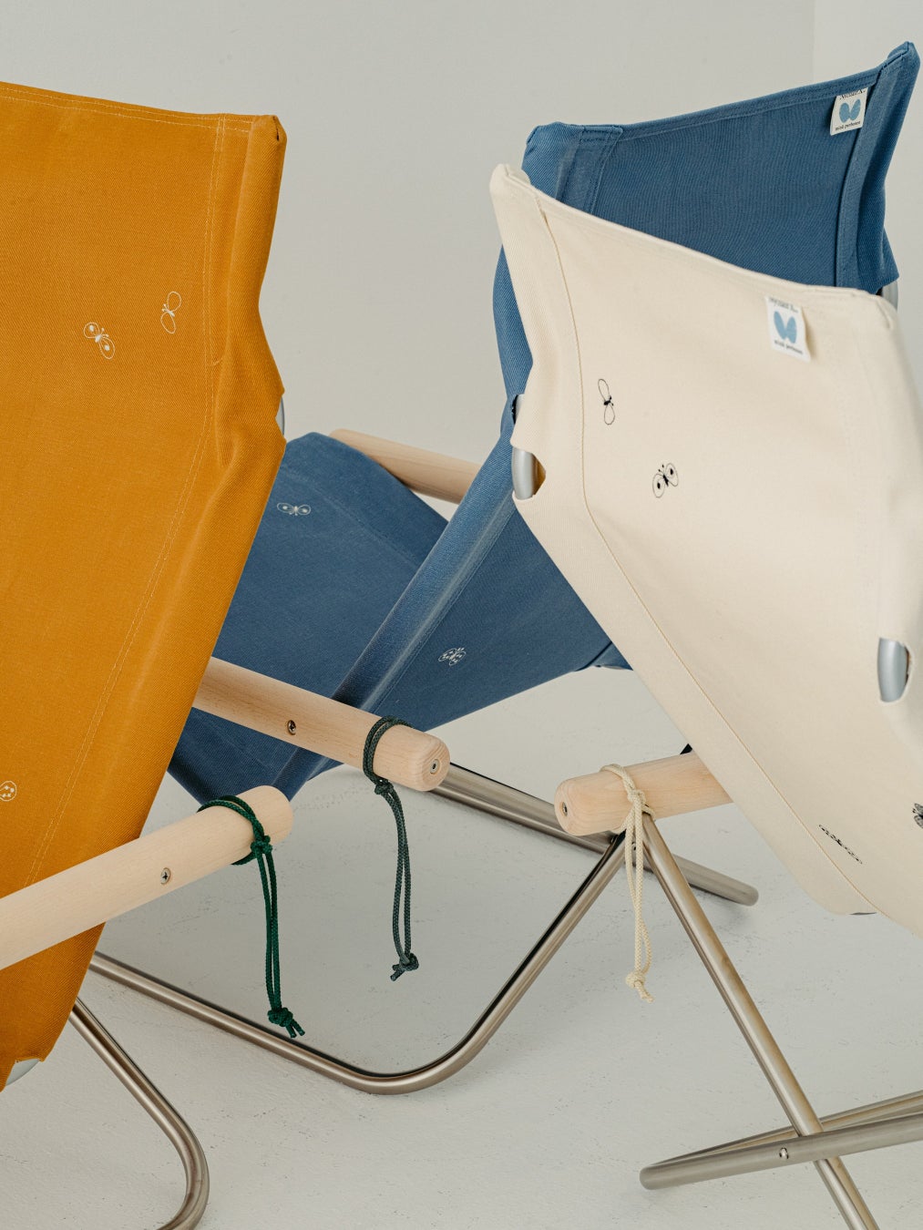 “choucho”のモチーフを囲むように、今回の共同開発を表現した「Nychair X」と「minä perhonen」のダブルネームとなっています。