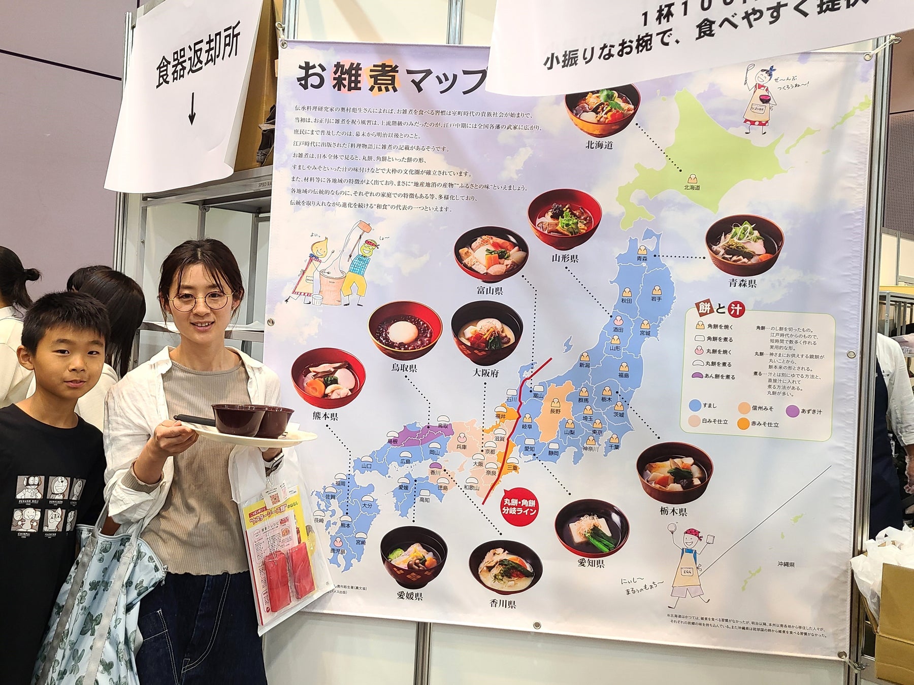 ②「日本列島お雑煮あれこれ」4種の伝統雑煮の調理・販売(1杯200円、各県200食限定)、レシピ紹介