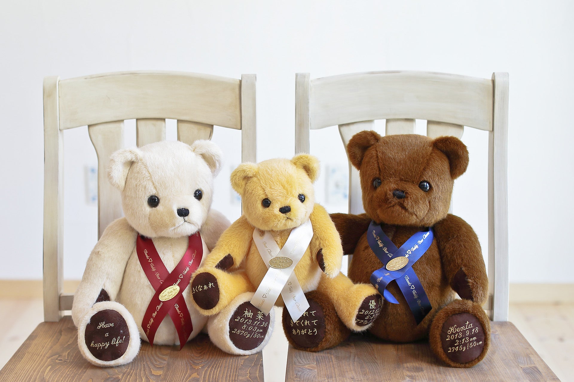 赤ちゃん体重テディベアは、生まれた時の重さで作られたクマのぬいぐるみ。ウェイトベア/ウエイトドールと呼ばれることもあります。