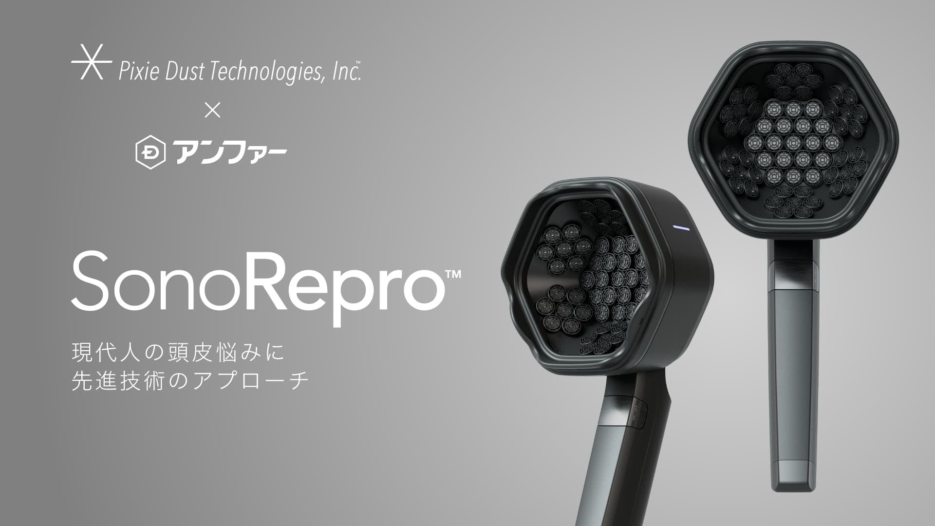 落合陽一率いるピクシーダストテクノロジーズ、予防医学のアンファーと共同開発した超音波ヘアケアデバイス「SonoRepro™」の先行販売を7月1日よりMakuakeにて開始
