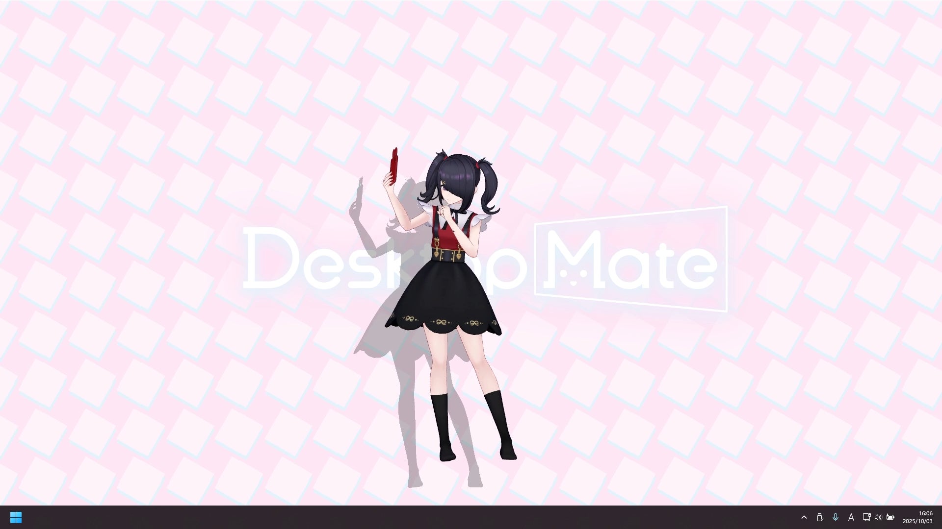Desktop Mate(デスクトップメイト)は、あなたのPCデスクトップに、かわいいキャラクターたちが寄り添う次世代のデスクトップマスコットプラットフォームです。最新の3D技術を駆使した美麗なグラフィックで、公式監修のもと制作された高クオリティーなキャラクターたちがデスクトップ上で魅力的に動き回ります。