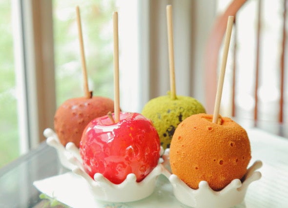 - 常設店で食べられる、食べ歩き用りんご飴「カットテイク」