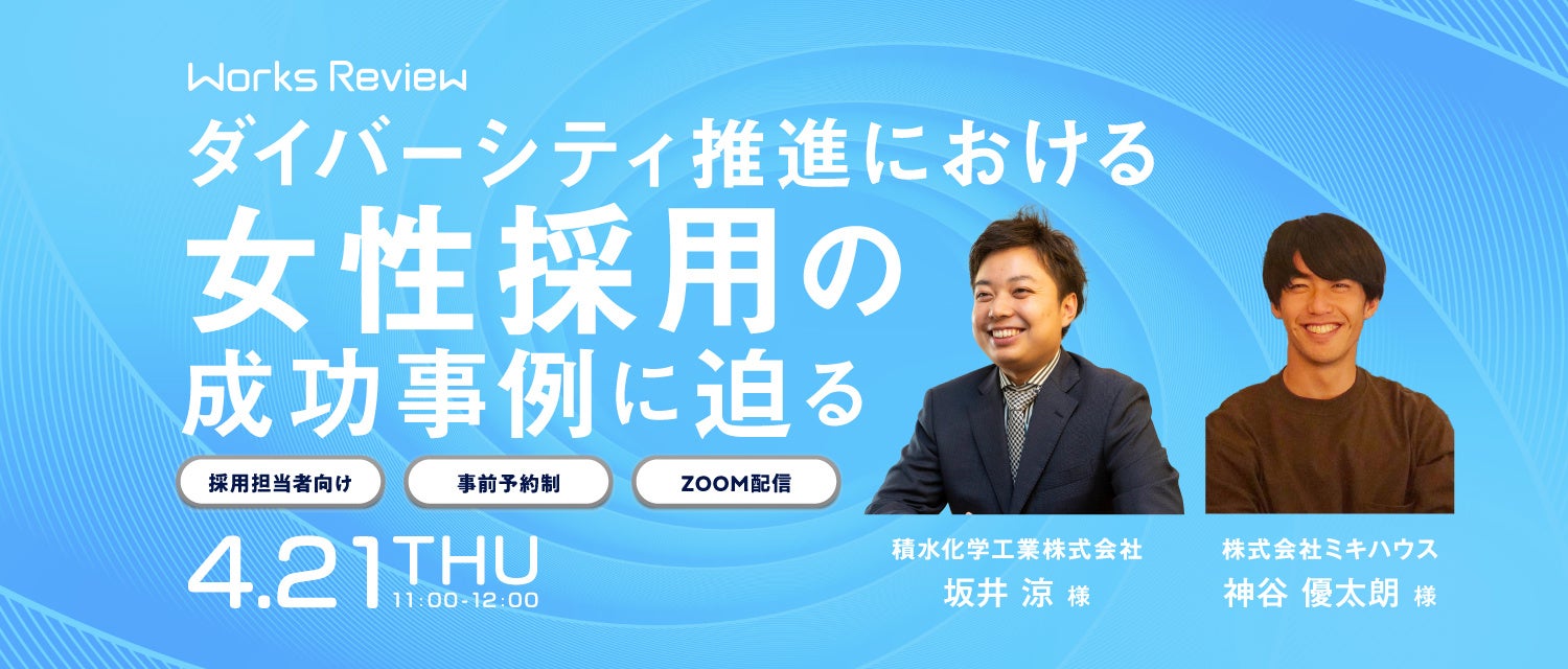 積水化学工業、ミキハウスの2社の人事担当者様にご登壇いただき、ダイバーシティ推進における女性採用成功事例をレビューします!