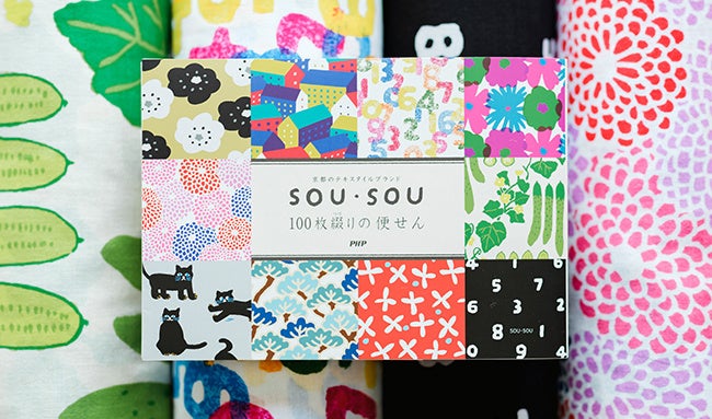 現代のライフスタイルに寄り添うものづくりを展開する京都のテキスタイルブランド「SOU・SOU」(代表取締役:若林剛之)は、『京都のテキスタイルブランド SOU・SOU 100 枚綴りの便せん』(発行:株式会社PHP研究所)を発売します。これまでに商品化されたオリジナルのテキスタイル728 柄のうち厳選の100 柄がそれぞれ1枚ずつの便せんに。電話やメールなどで用件を済ませてしまうことが増えた昨今、こんな時代だからこそ、手書きの手紙やメッセージをしたためたくなるアイテムです。