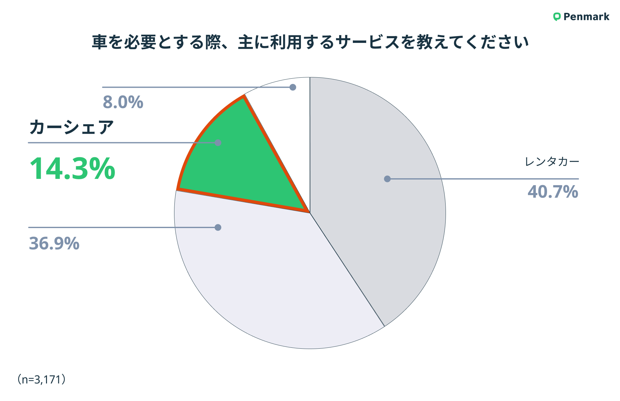 ①Z世代のカーシェア利用率は14.3%。利用シーンは、短時間や少人数での旅行