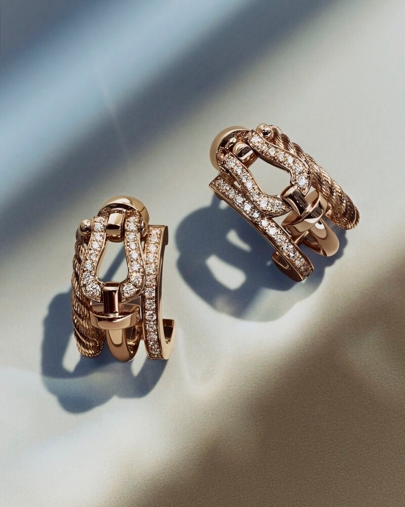 この大胆なグラフィックデザインは、リングではまったく新しい次元に。指にはめると印象的なリングがそのカリスマ性を発揮します。またメゾンは全く新しいネックレスをレパートリーに加えました。その日の気分で単品でも重ねづけでも楽しめるネックレスです。2種類のイヤリングは、フォース10ライズのデザインにひねりを加え、半月型とフープ型で展開し、幾何学的でコンテンポラリーな美しさを醸し出します。イヤークリップのバリエーションも加わり、好きな位置につけてさまざまな表情をお楽しみ頂けます。アイコニックなコレクションにフレッシュなエネルギーとコンテンポラリーなヴィジョンを吹き込んだフォース10ライズで、フレッドはエレガンスと意思をもって自分だけのストーリーを綴るよう、あなたを誘います。これらの5つの作品は、クリエイティブなゲームの一部となり、身に着ける人が思いのままに様々なフォース10を組み合わせることで自分だけのルールを生み出します。