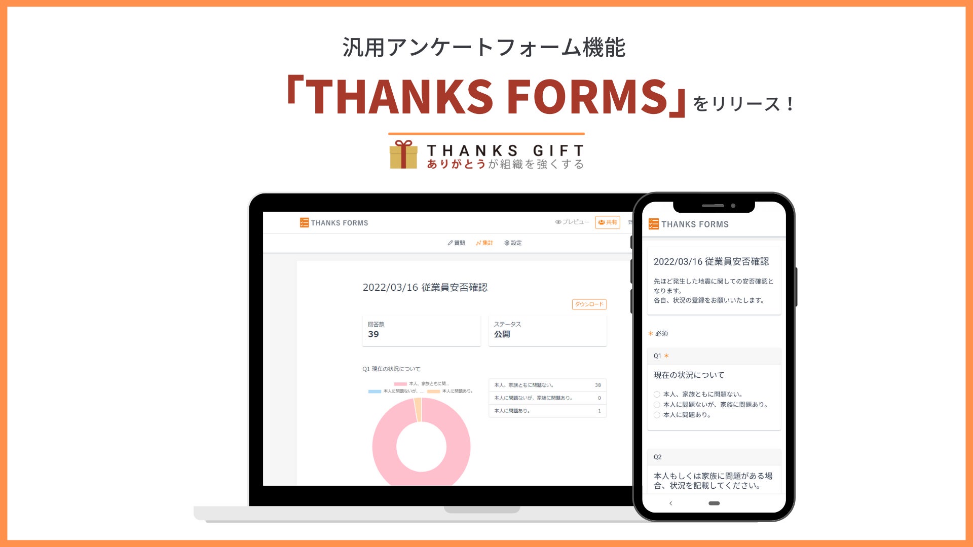 コミュニケーションプラットフォーム「THANKS GIFT-サンクスギフト」を運営する株式会社TakeAction(本社:東京都品川区、代表取締役社長:成田靖也)は汎用アンケート機能「THANKS FORMS」をリリースしました。
