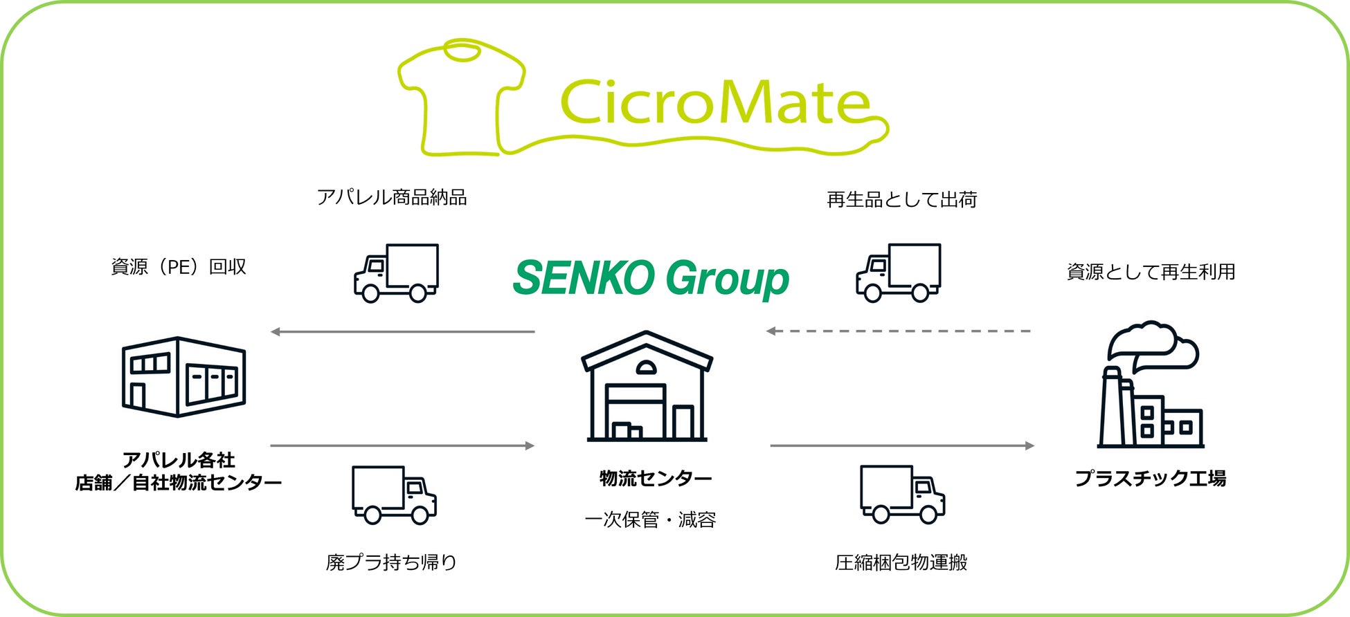 株式会社東京ソワール(本社:東京都中央区、代表取締役社長:小泉純一)は、循環型社会の実現を目指すべく、センコーグループホールディングス株式会社(本社:東京都江東区代表取締役社長:福田泰久以下「センコーグループ」)が中心となり、アパレル納品物流業務・輸送網を活用して効率的にプラスチックを回収し再生する資源循環プラットフォーム「CicroMate」に参加することをお知らせいたします。
