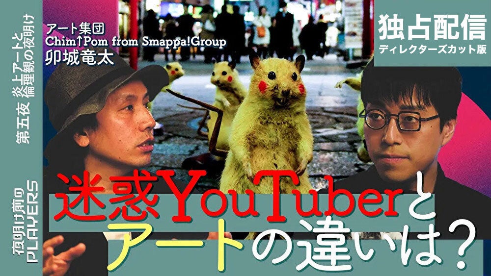 5月29日(月)深夜に放送された空間芸術アーティスト「Chim↑Pom from Smappa!Group」(以後、「Chim↑Pom」)・卯城竜太ゲスト回の未公開のシーンが収録されたディレクターズカット版の配信がPLAYの動画配信プラットフォーム「PLAY VIDEO STORES」にて5月30日(火)より配信開始しました。