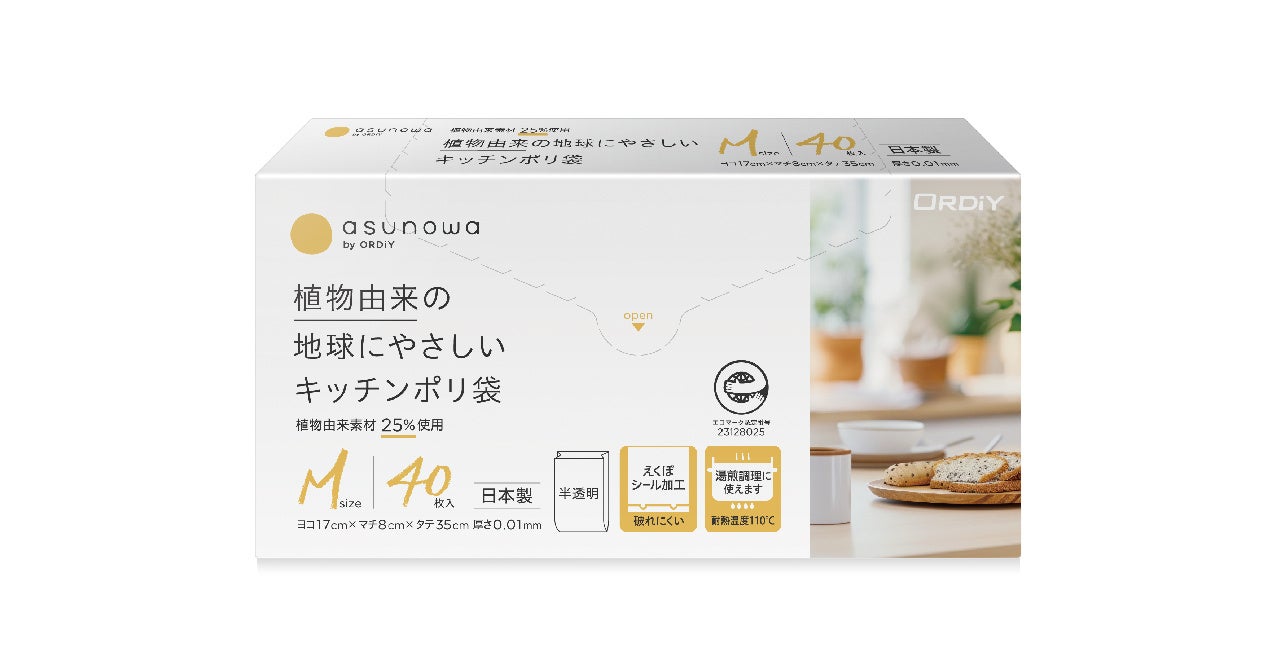 オルディ株式会社(代表取締役社長 寳田昌也)は、環境プロジェクト『asunowa(あすのわ)』 SERIES 01 植物由来の地球にやさしいポリ袋シリーズから、植物由来のキッチンポリ袋を5月21日より発売します。