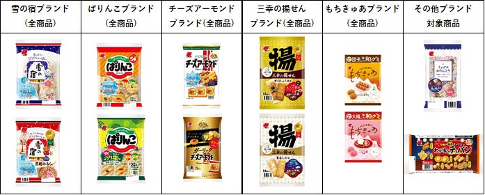 主な商品は1977年発売の「雪の宿」や1975年発売の「ぱりんこ」、「新潟仕込み」、「丸大豆せんべい」などのおせんべい、「チーズアーモンド」をはじめとするお米のクラッカー、「粒より小餅」「三幸の柿の種」などのあられ・おかきの他、「ミックスかりんとう」などかりんとう商品、米粉を使ったおもちのようなグミ「もちきゅあ」なども販売しています。