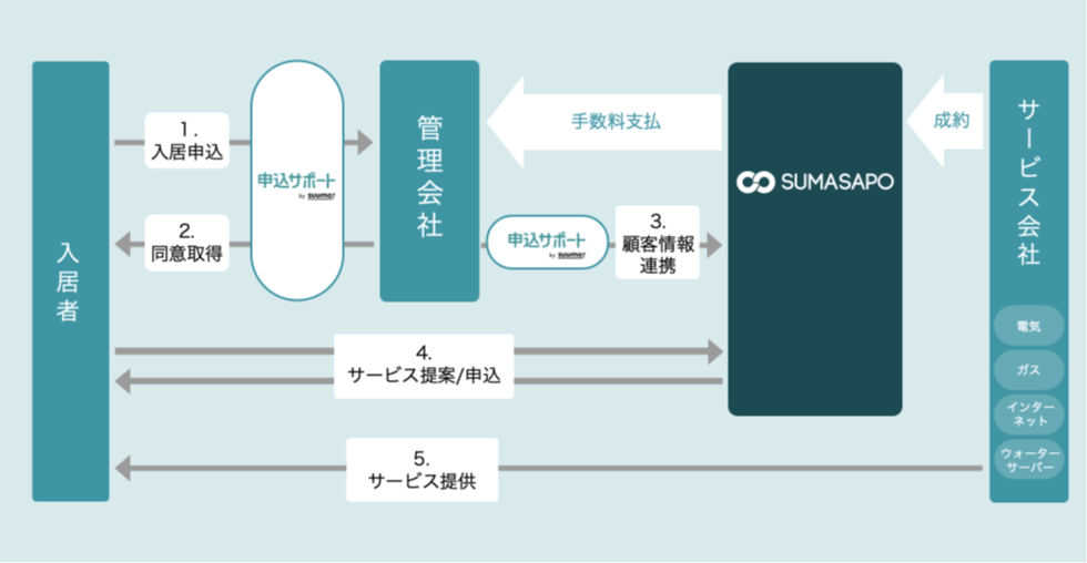 物件入居時のライフライン紹介・手続き代行サービスを提供する株式会社スマサポの「スマサポサンキューコール」が、賃貸物件の申込関連業務のデジタル化を提供する「申込サポート by SUUMO」と連携