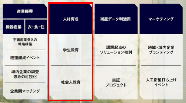 大分県へは、2)人材育成の分野で宇宙産業活性化の支援を提供しています。