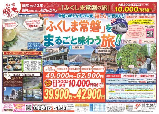 ふくしま常磐をまるごと味わう旅(2024年1月~3月出発で148名参加、8本設定中7本催行)